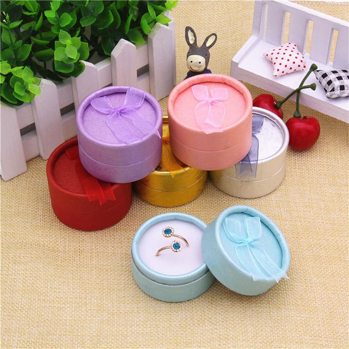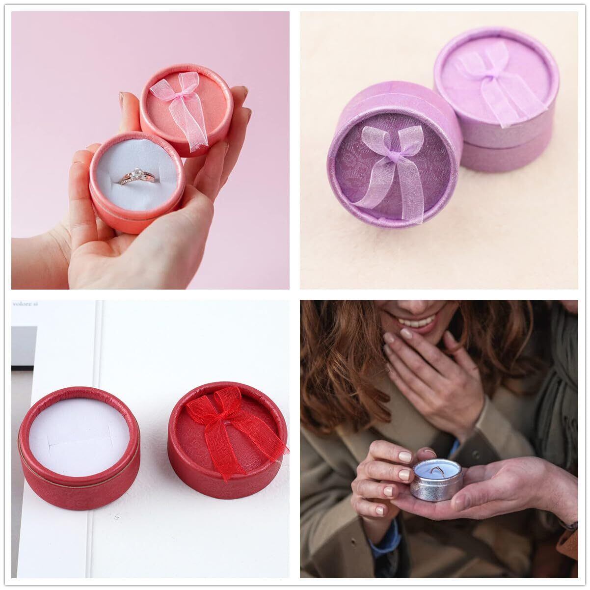 Getrays 8個 蝶結び 指輪ケース、カラフル 円形 ジュエリー ボックス プロポーズ リングケース 小物 収納 紙箱 イヤリング ネックレス ブレスレット ギフト箱 リボン プレゼント用箱 (6色)