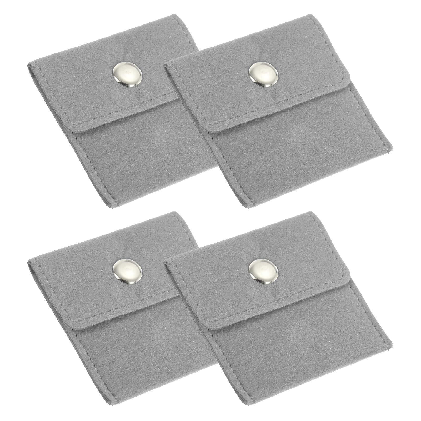 PATIKIL 4個 アクセサリーポーチ 7cm x 7cm ベルベット ミニ収納袋 スナップボタン付き アクセサリーケース 持ち運び ジュ エリーポーチ バッグ リング ピアス イヤリング ネックレス 腕時計 グレー