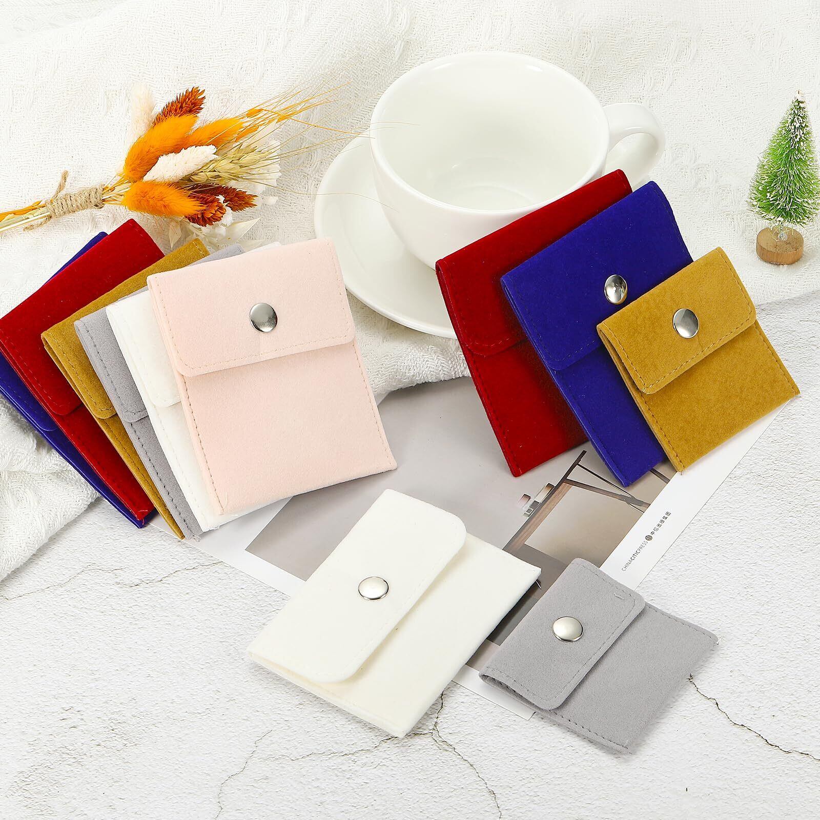 ベルベット製で、柔らかく軽量で、触り心地が良く持ち運びしやすく、宝石を傷からしっかり保護します。密なステッチエッジ:角は密な針仕事で縫われており、使いやすく耐久性があります。スナップボタンデザイン:口の開口部に強固で硬いスナップボタンがあり、小さなものが滑り落ちるのを防ぎます。