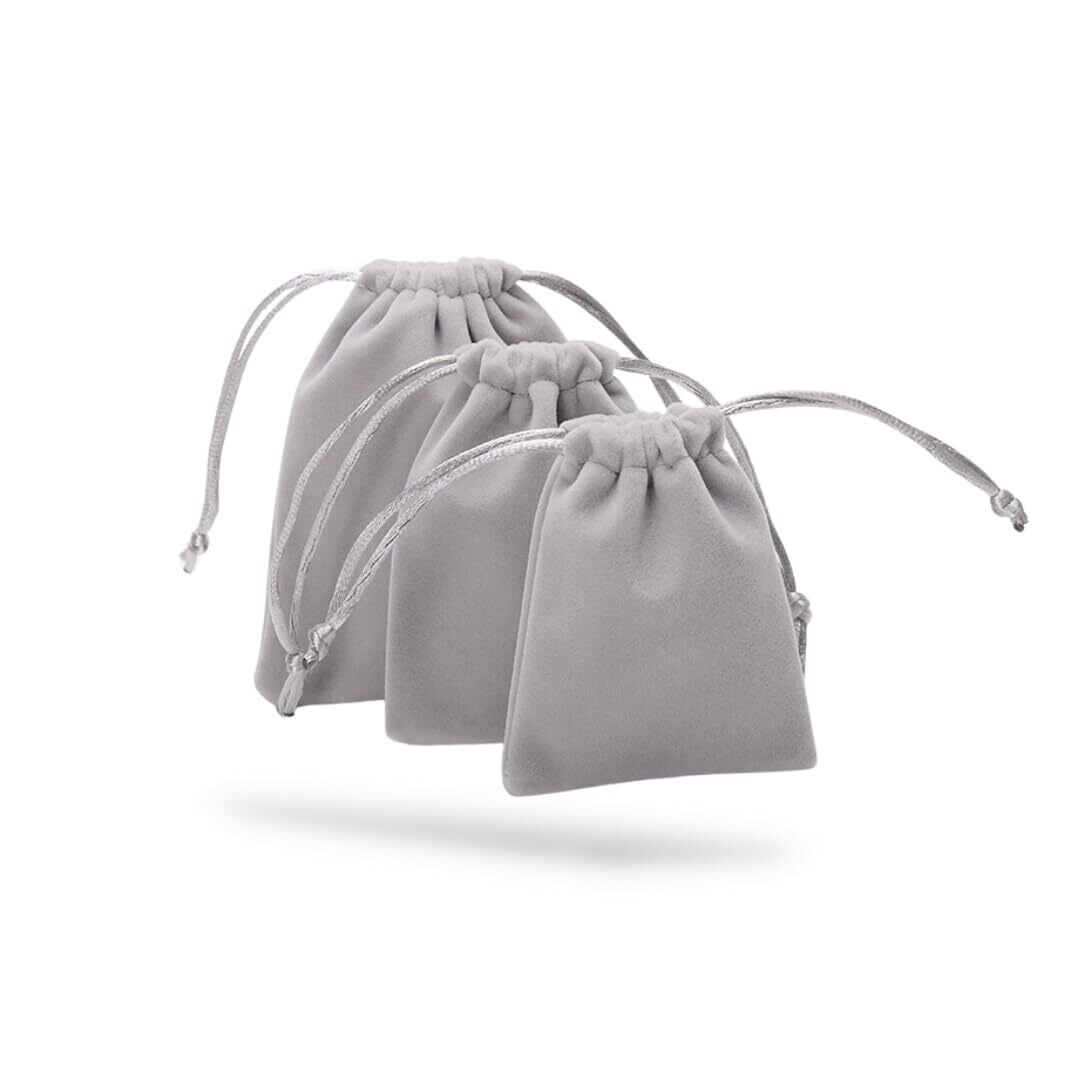 【数量限定】レジプロb ベロア調 ミニジュエリーポーチ ギフト用 巾着袋 12枚セット (シルバーグレー, 7cm×9cm)