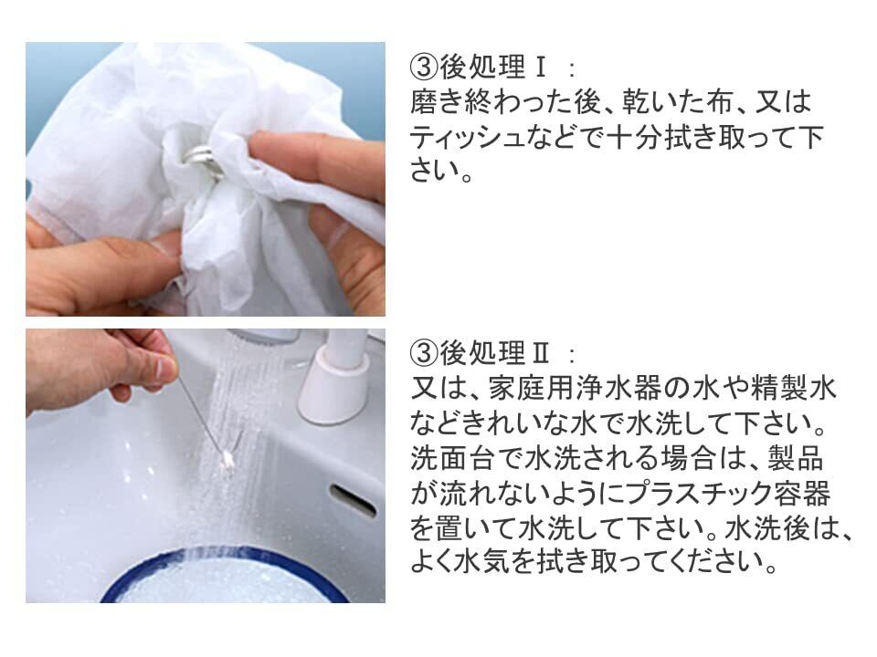 ・メッキ処理をされている製品などは、皮膜が薄いので磨きすぎないようご注意下さい。