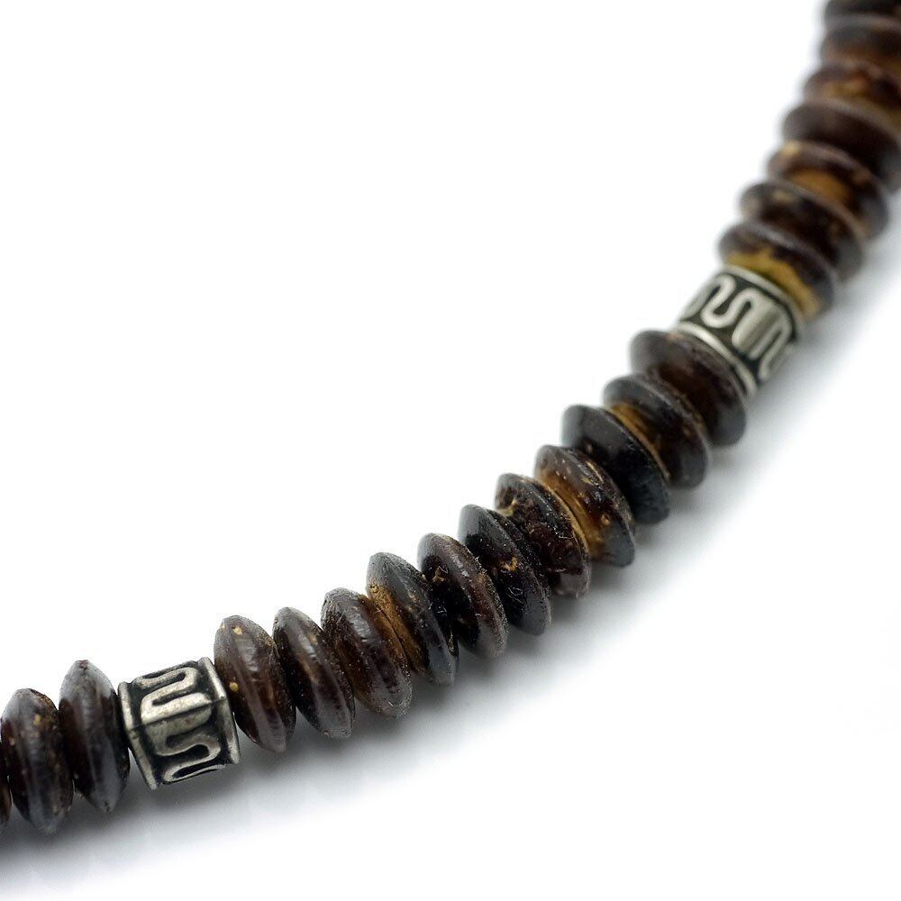 [シルバーワン] ココナッツの種 弾性サマー チョーカー ビーズ ネックレス メンズ [幅7mm/9mm 長45cm/50cm]