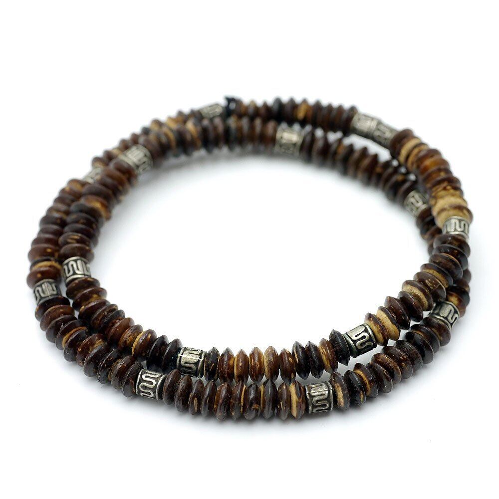 【新春セール】[シルバーワン] ココナッツの種 弾性サマー チョーカー ビーズ ネックレス メンズ [幅7mm/9mm 長45cm/50cm]