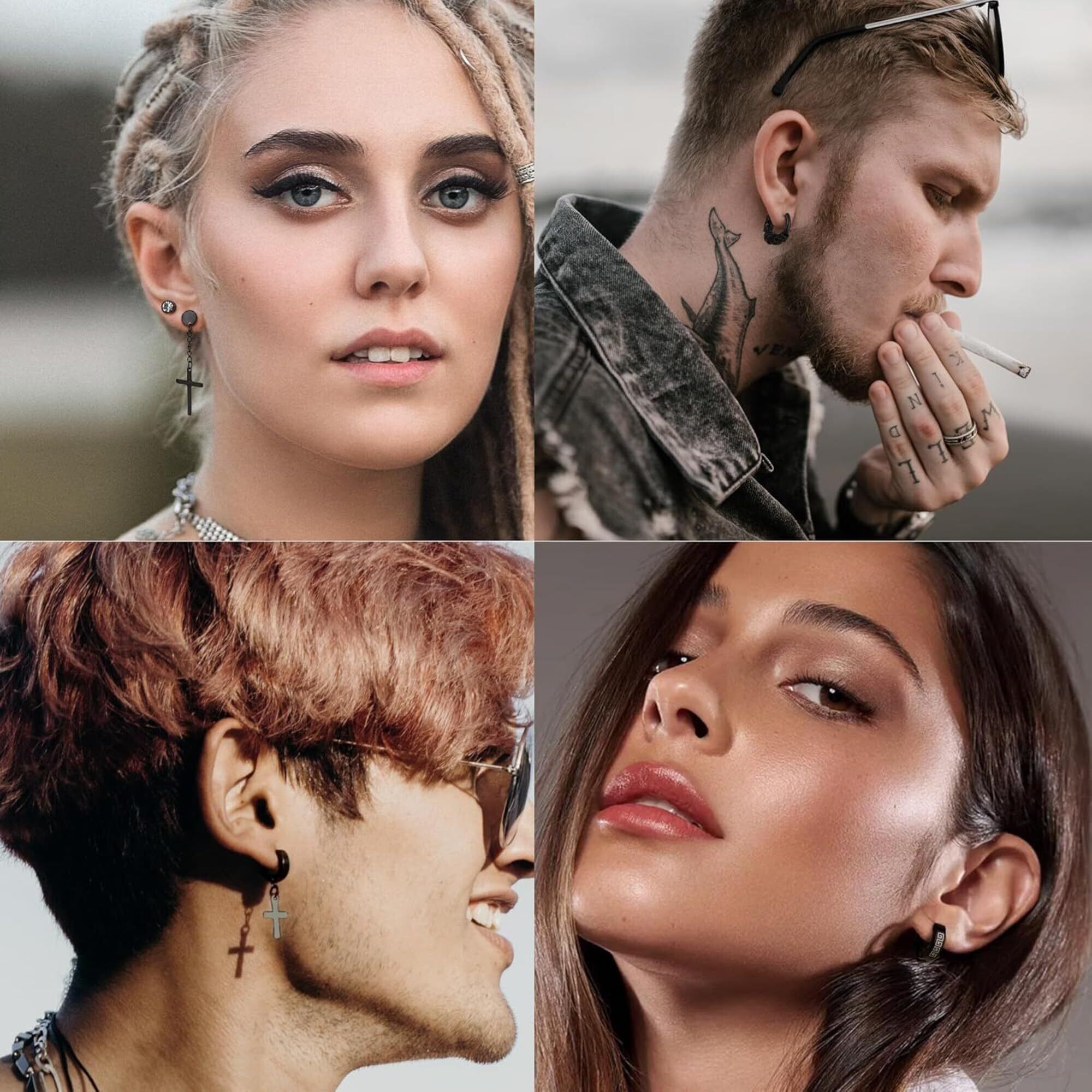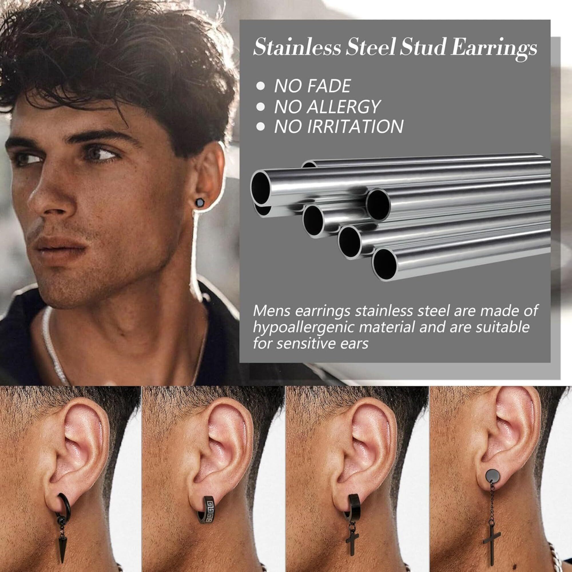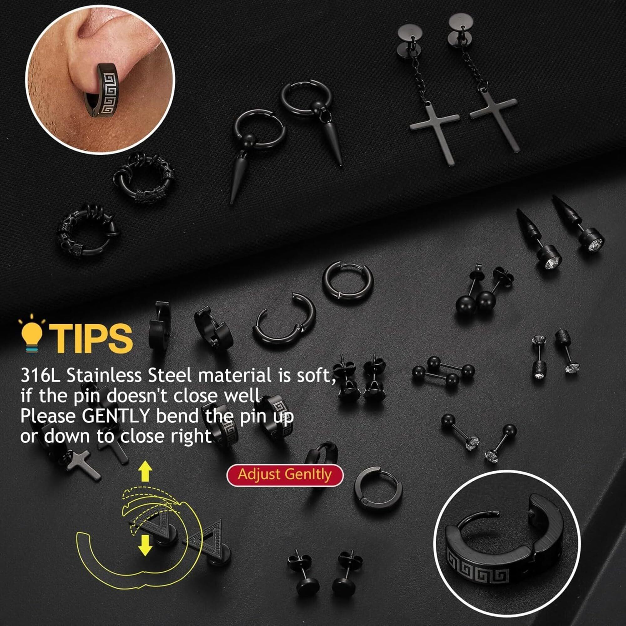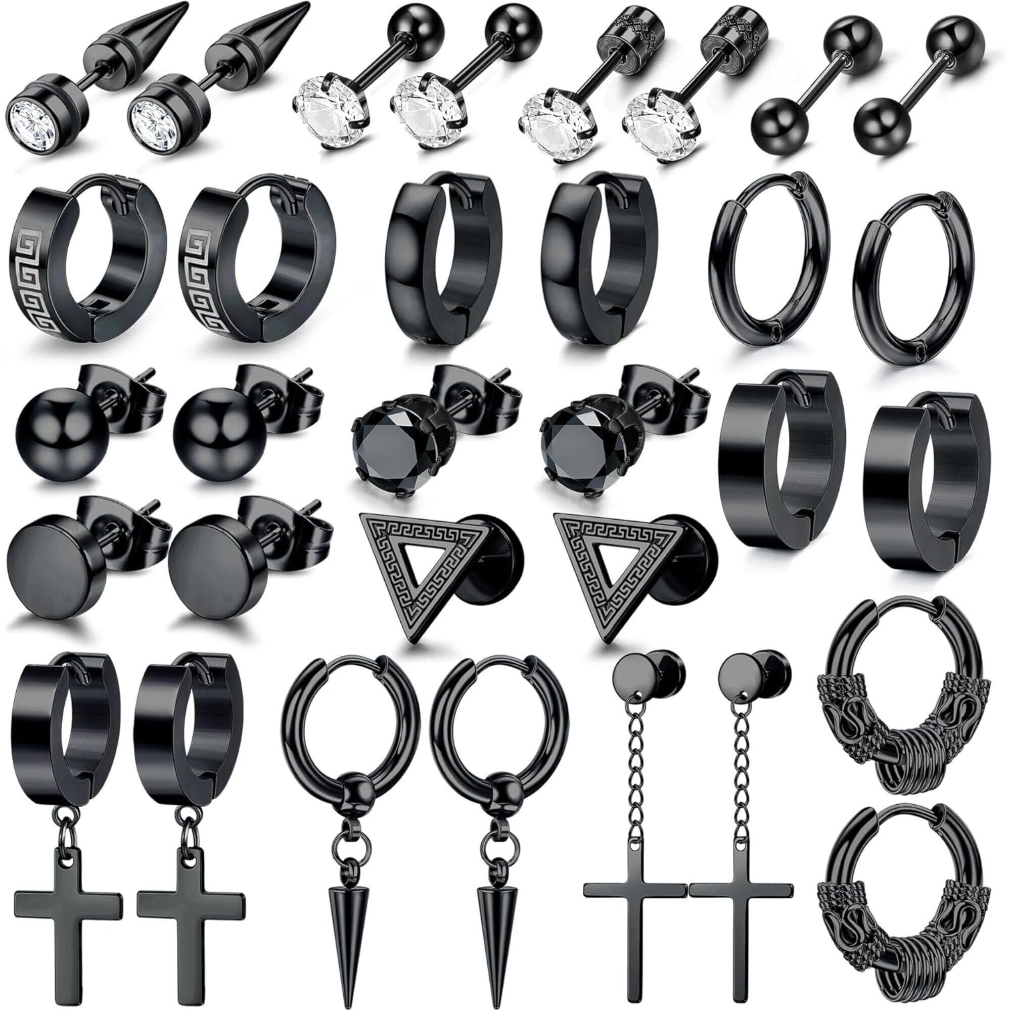 Jstyle 16ペア ピアス メンズ スタッドピアス フープ ブラック 両耳 セット 男性 リングピアス ステンレス アレルギー対応 トラガス シンプル 日常