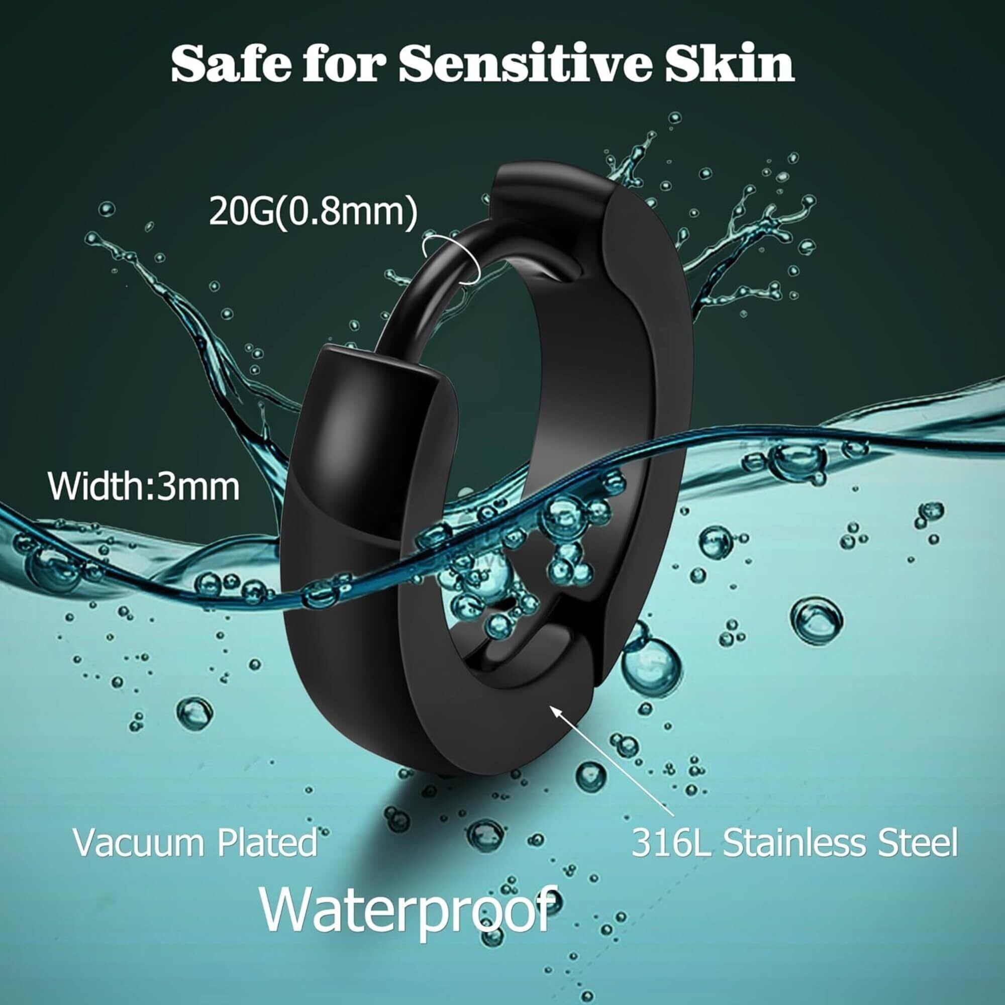 【特価商品】Jstyle 16ペア ピアス メンズ スタッドピアス フープ ブラック 両耳 セット 男性 リングピアス ステンレス アレルギー対応 トラガス シンプル 日常
