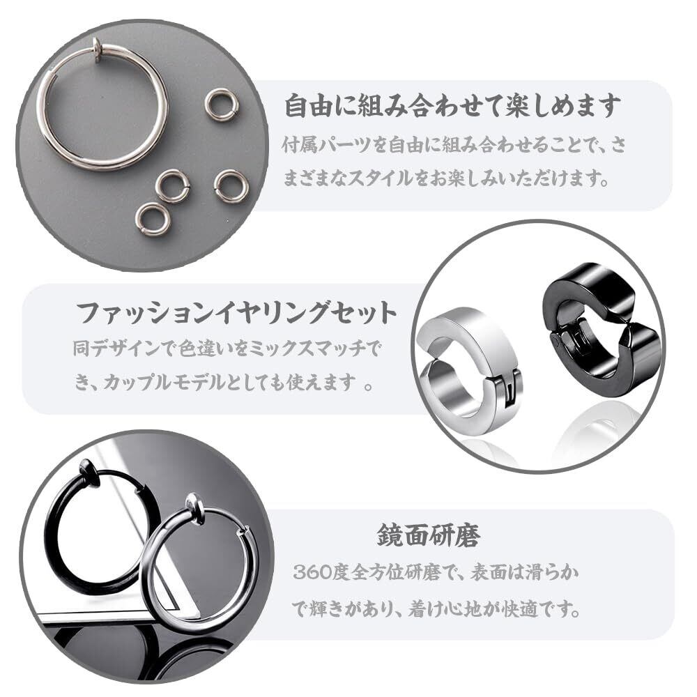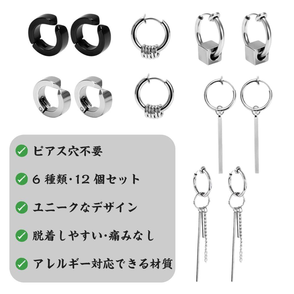 【2022最新】フェイクピアス イヤーカフ ユニセックス 人気 ノンホールピアス シルバー ブラック リング 両耳用 ステンレス ユニセックス イヤリング (6ペア 1 2個セット)