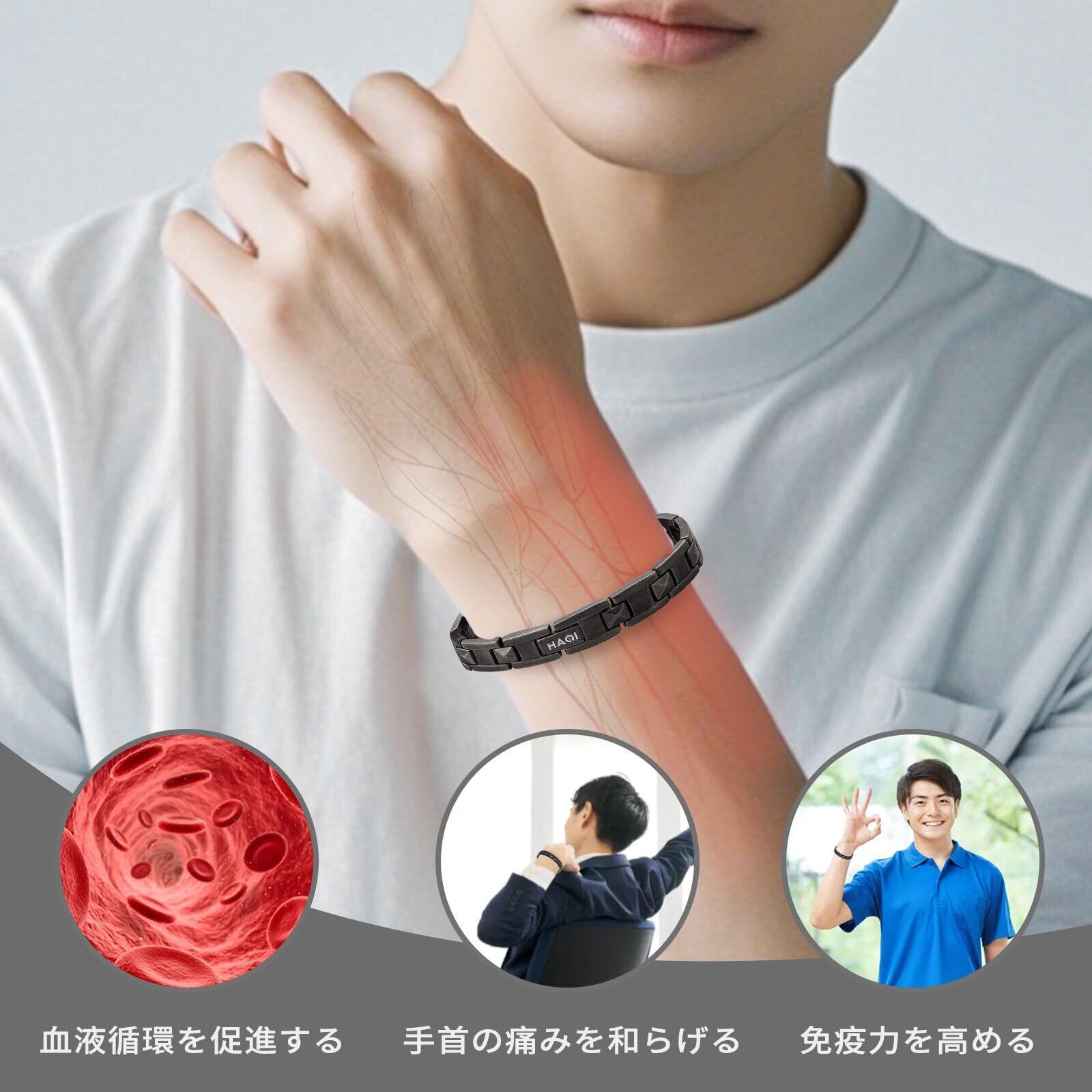 [HAQI] ゲルマニウムブレスレット メンズ チタン 磁気ブレスレット 静電気除去 静電気防止 男女兼用