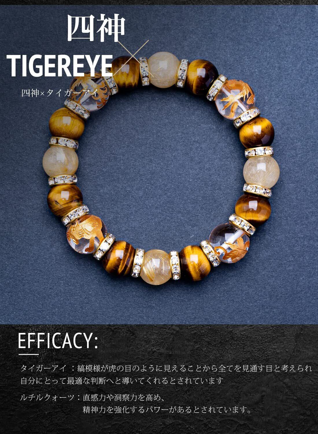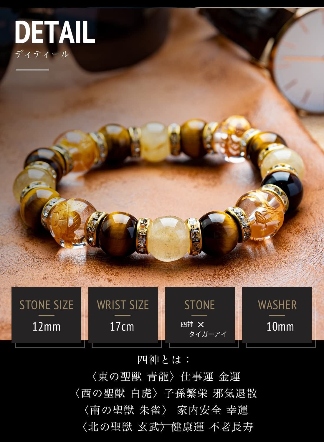 [京珠堂] パワーストーン 天然石 四神 魔除け 厄除け メンズ ブレスレット 青龍 白虎 朱雀 玄武