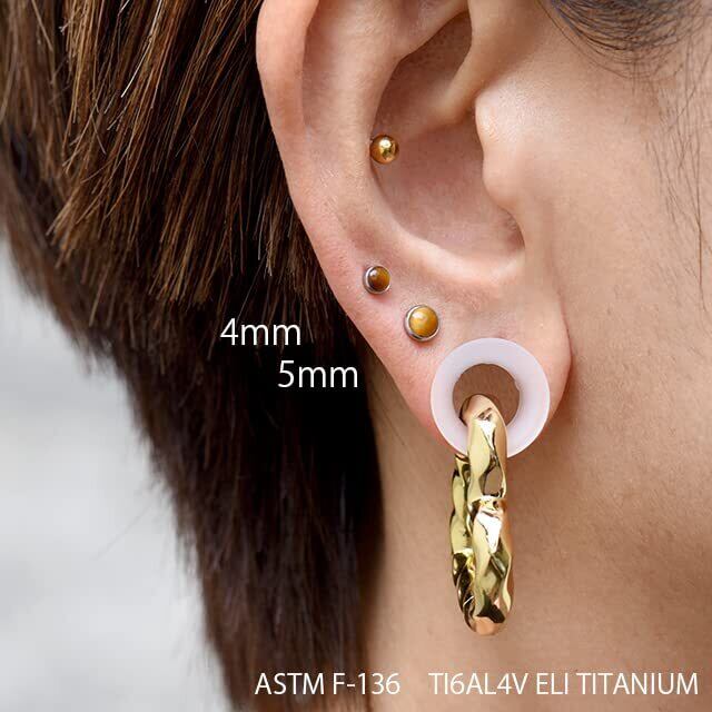 人気のタイガーアイカラーピアスは、肌になじむので使いやすいです。 台座もラブレットもチタン素材なのでお肌に優しくオススメです。 イヤーロブやヘリックス、トラガス、インナーコンク、アウターコンクなど軟骨ピアスにもオススメです。※模様はそれぞれ異なります、多くあるものや少ないもの様々です予めご了承下さい。