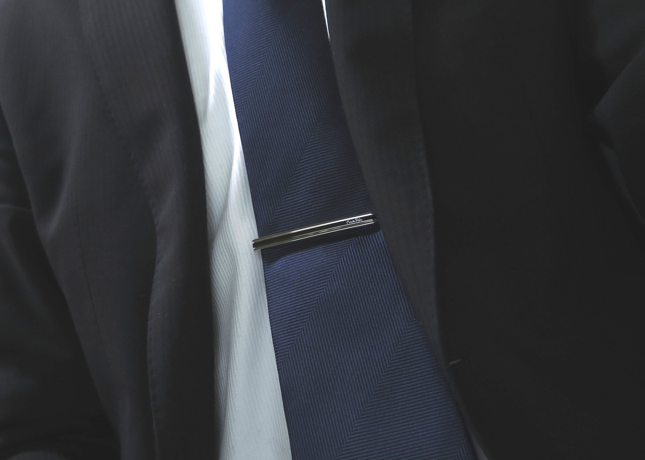 ミラショーン ガンメタリック ボーダー タイバー (タイピン/タイクリップ) メンズ 真鍮