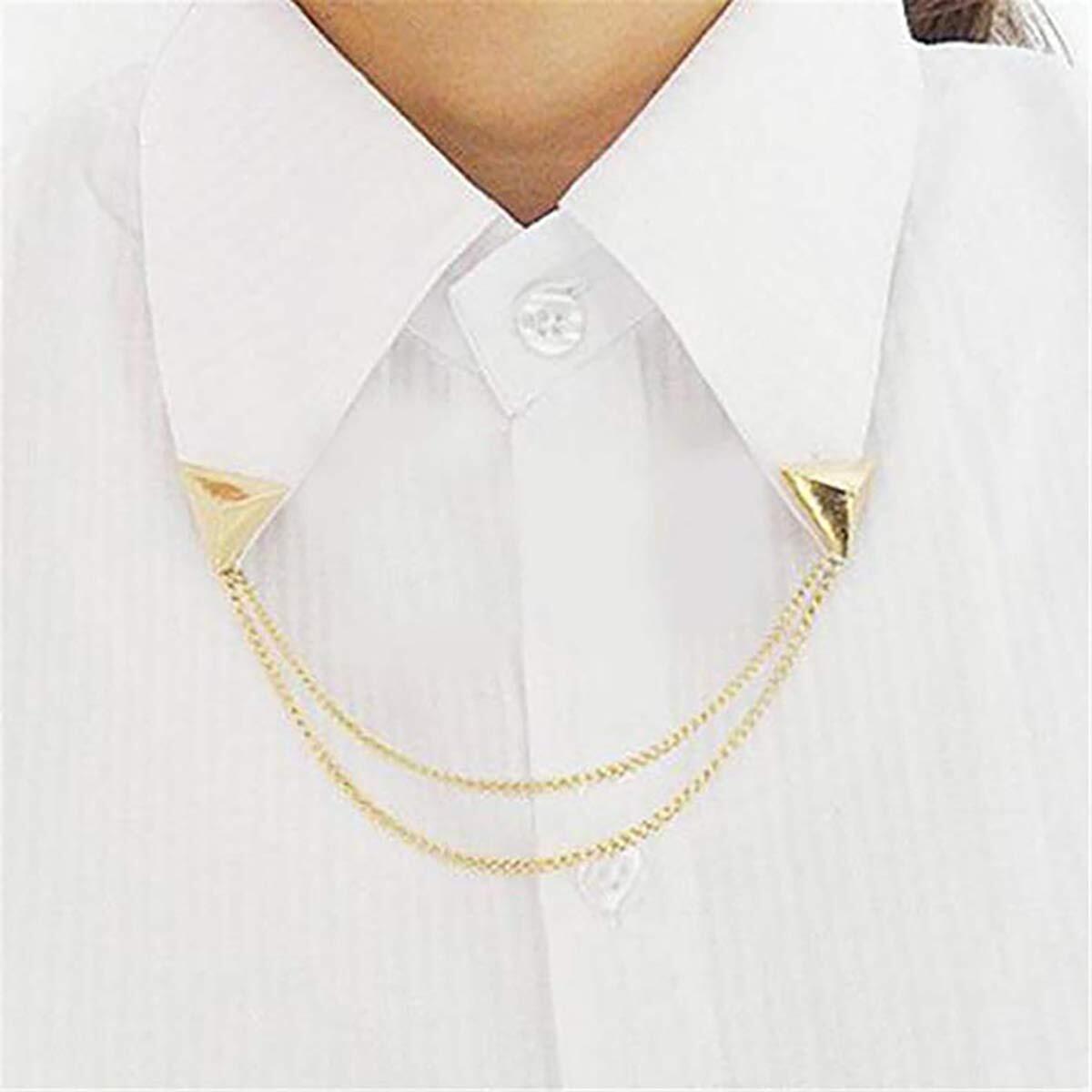 【2022最新】LKXHarleyaスタッドダブルチェーンブローチピン、タッセルチェーン付きシャツネックカラーチップ、スーツ用ブラウスラペルピン。