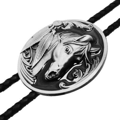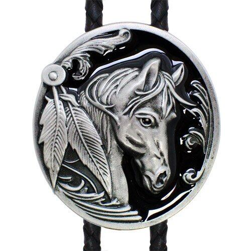 [Bowties.jp] ウエスタン ネイティブアメリカン風 ループタイ ネックレス】 ポーラータイ ポロタイ 青馬 黒馬