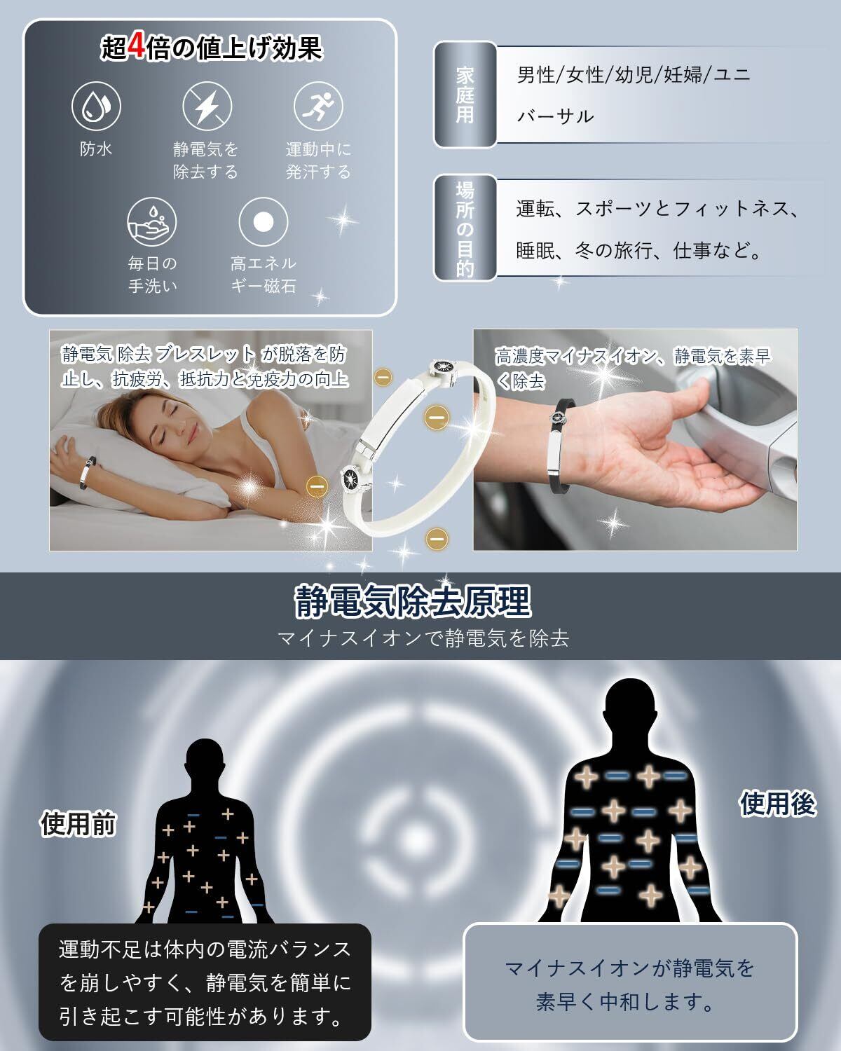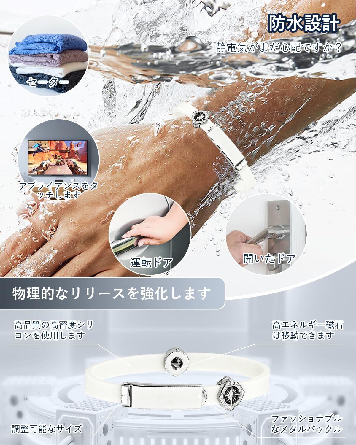 [Sungale] 静電気除去 ブレスレット最强 強化モデル レディース メンズ 磁気 スポーツ シリコンブレスレット 防水 静電気防止グッズ 静電気軽減 サイズ調整可能 #ZNZ