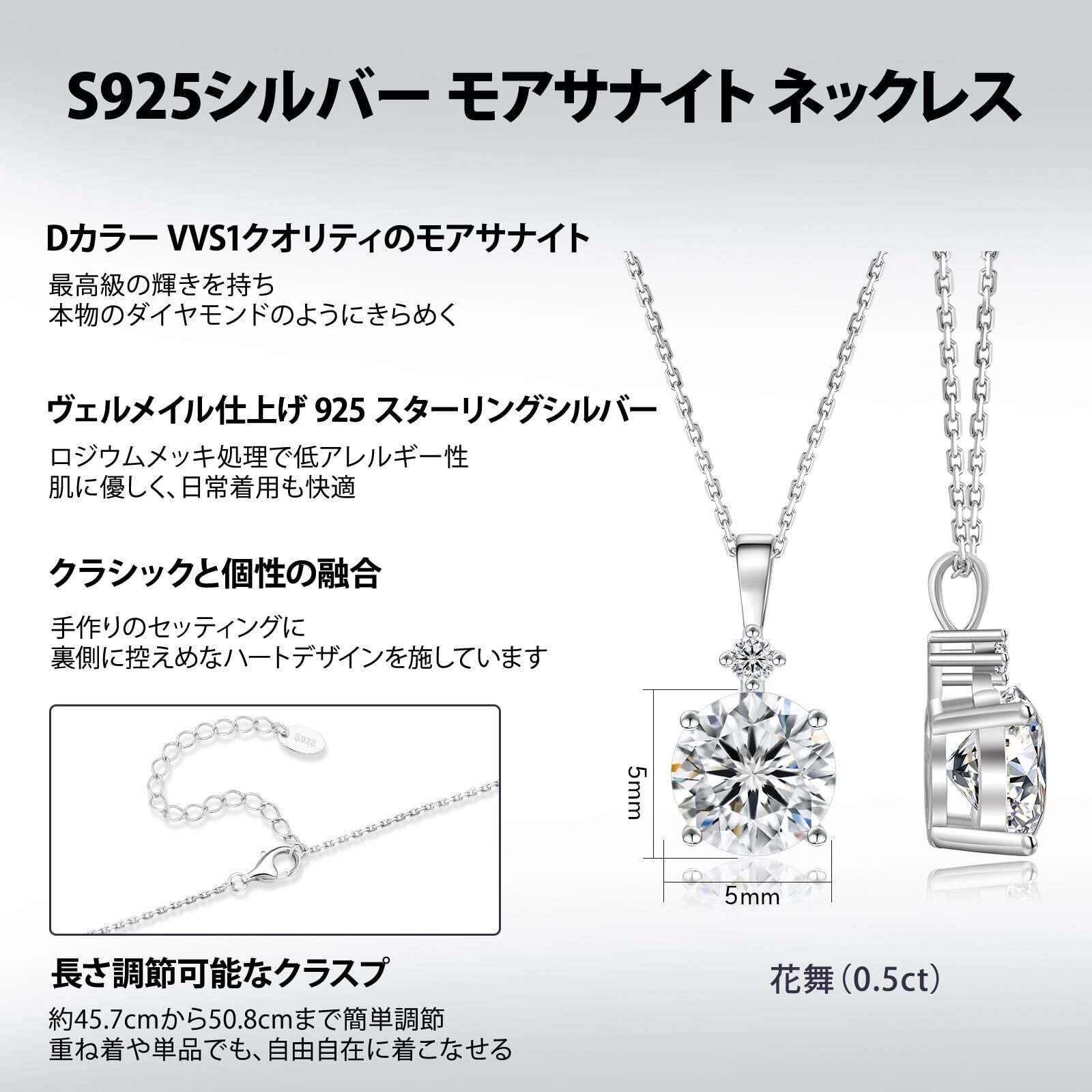 【在庫処分】[KRKC] モアサナイト ネックレスレディース:誕生日プレゼント女性 S925スターリングシルバー 一粒ダイヤ 0.5/1.0/2.0/3.0/4.0ct 人工ダイヤモンド 4本爪 金属アレルギー対応 ホワイトゴールドメッキ シンプル 人気 ギフトボックス付き チェーン可調節45+5cm