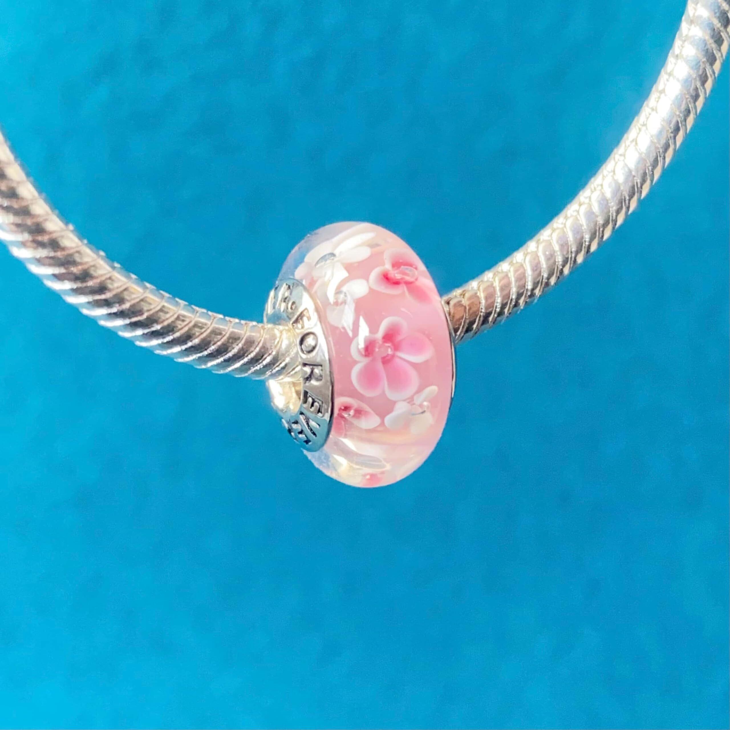 【在庫セール】[GUAIHAODE] 本物のムラーノガラス925スターリングシルバーチャームパンドラブレスレット用フラワーチャーム、レディースビーズ (02-color)