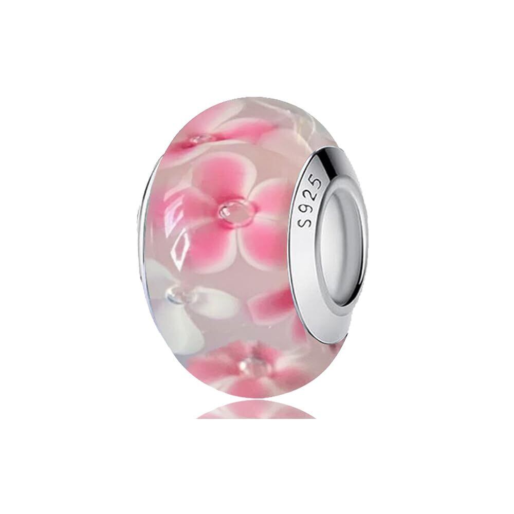 [GUAIHAODE] 本物のムラーノガラス925スターリングシルバーチャームパンドラブレスレット用フラワーチャーム、レディースビーズ (02-color)