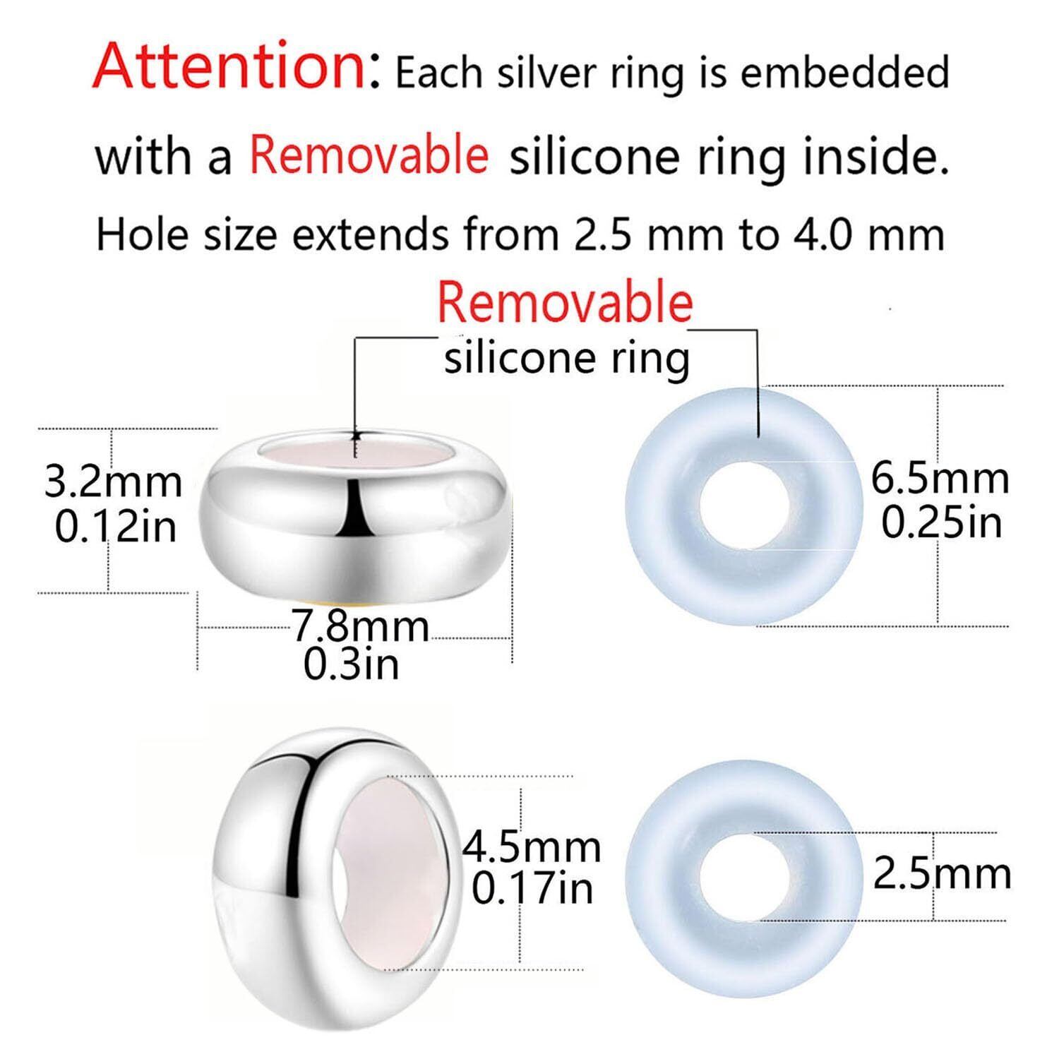 クリップストッパー チャーム スターリングシルバー ロンデル スペーサービーズ ブレスレット用 (2個)