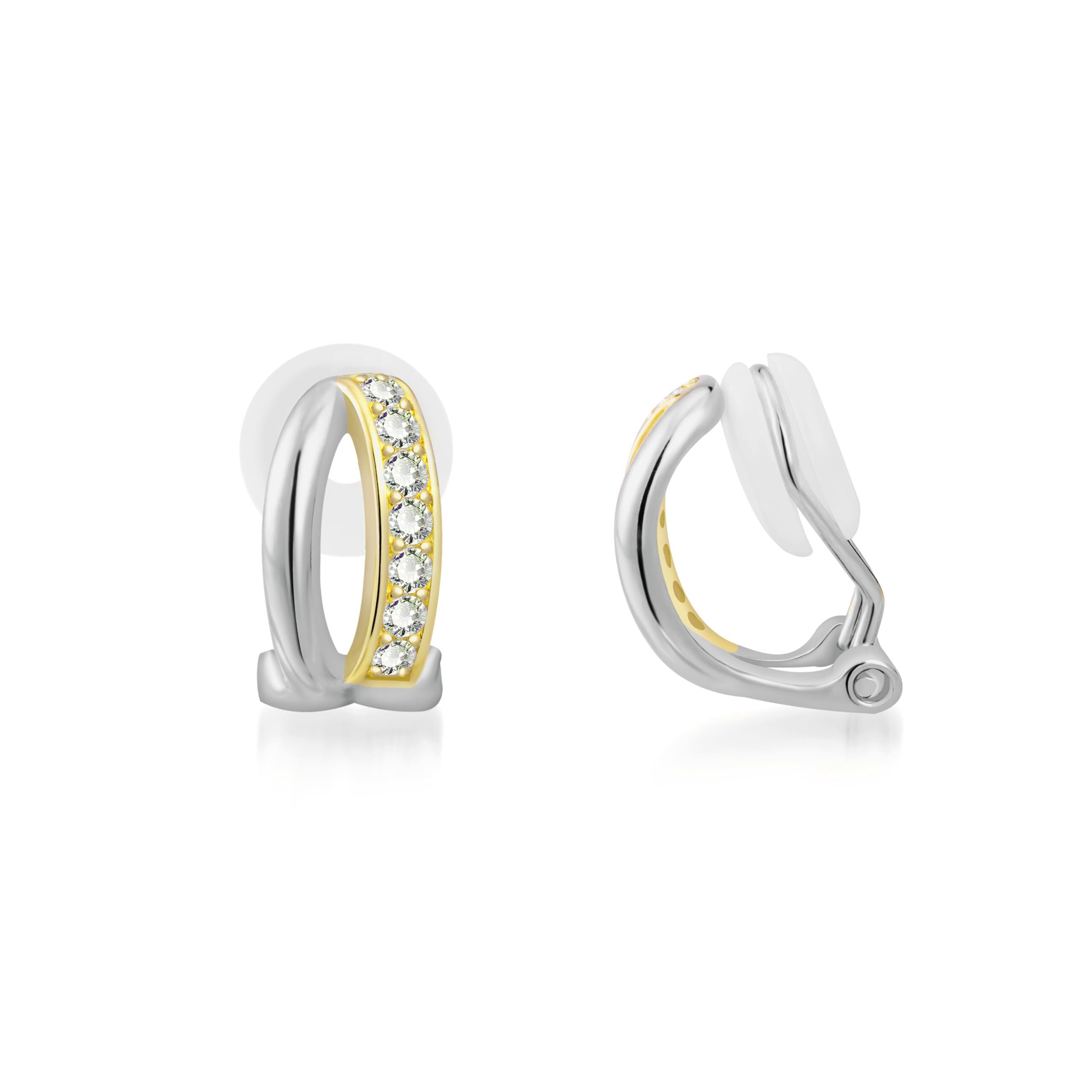 バイカラー デザイン:シルバーとゴールドの微妙な色合いが魅力的で、ゴールド部分にはきらめくジルコニアが繊細に配置されています。シンプルでありながら、洗練された美しさを引き立て、どんなシーンにも華やかさを添えるイヤリングです