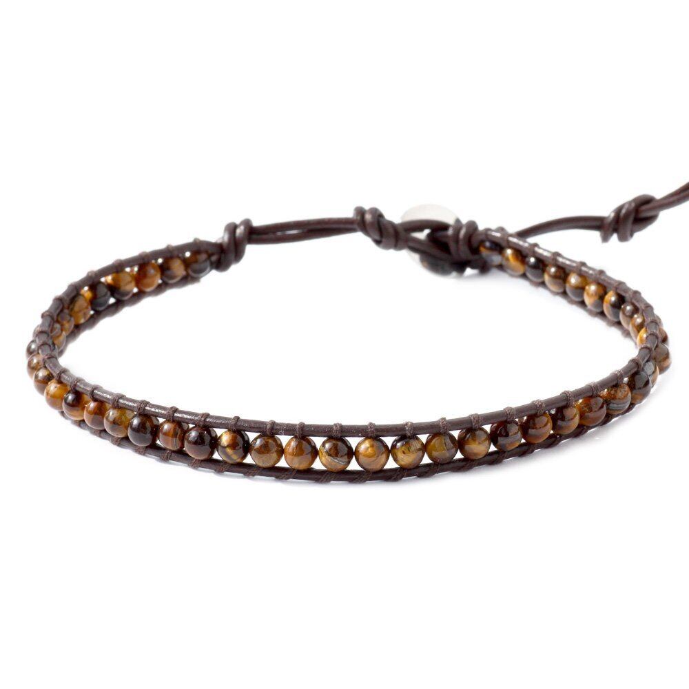 Binich(ビニッチ) 天然石 レザー アンクレット メンズ レディース フリーサイズ (タイガーアイ×ブラウン)