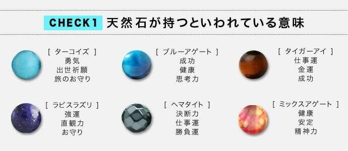 素材:天然石、ターコイズ、タイガーアイ、ラピスラズリ、ヘマタイト、オニキス、アゲート、レザー(本革)