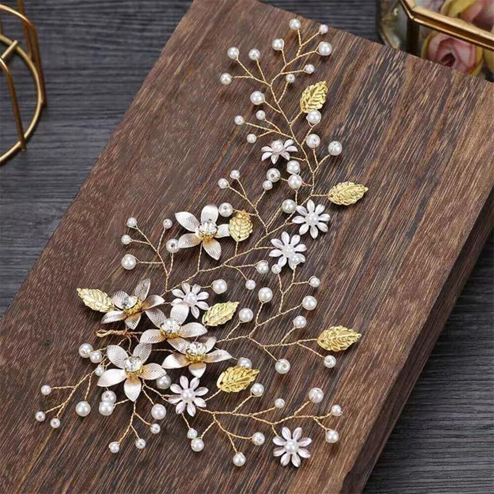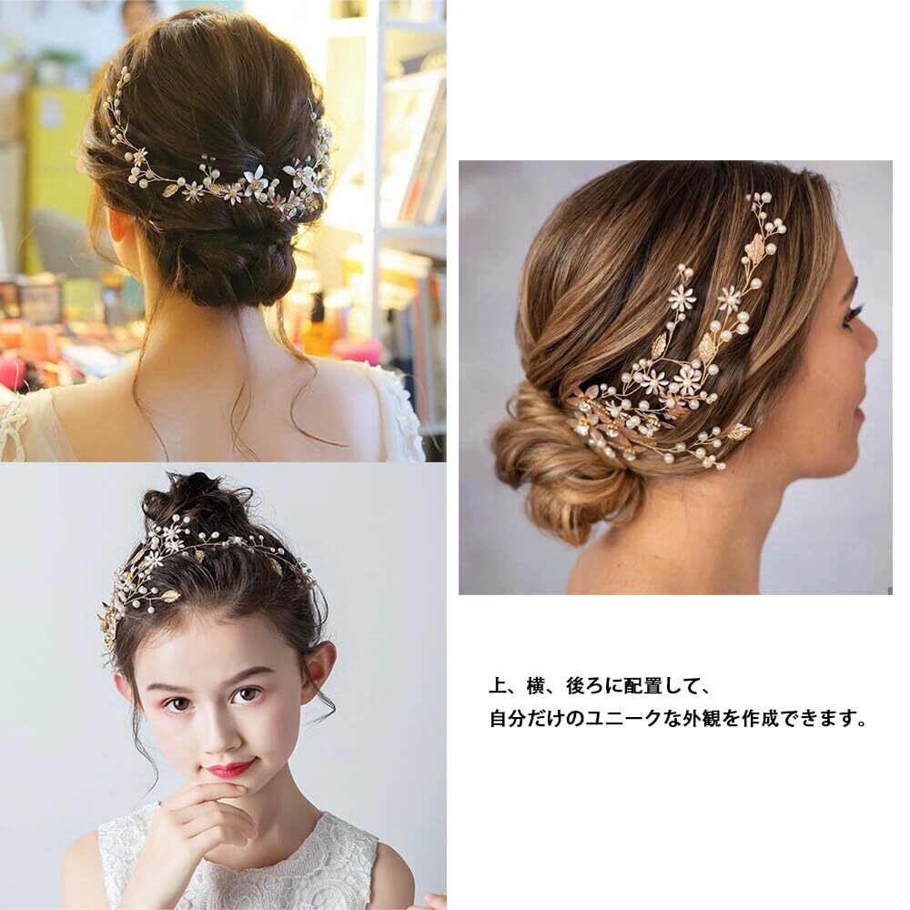 ヘアアクセサリー 結婚式 ウェディング 髪飾り 花 パール 花かんむり ヘッドドレス ゴールド バック カチューシャ お呼ばれ リーフ 花 ブライダル 披露宴 小枝 披露宴 結婚式 二次会 和装 パーティー 演奏会 卒業式 成人式 入学式 発表会