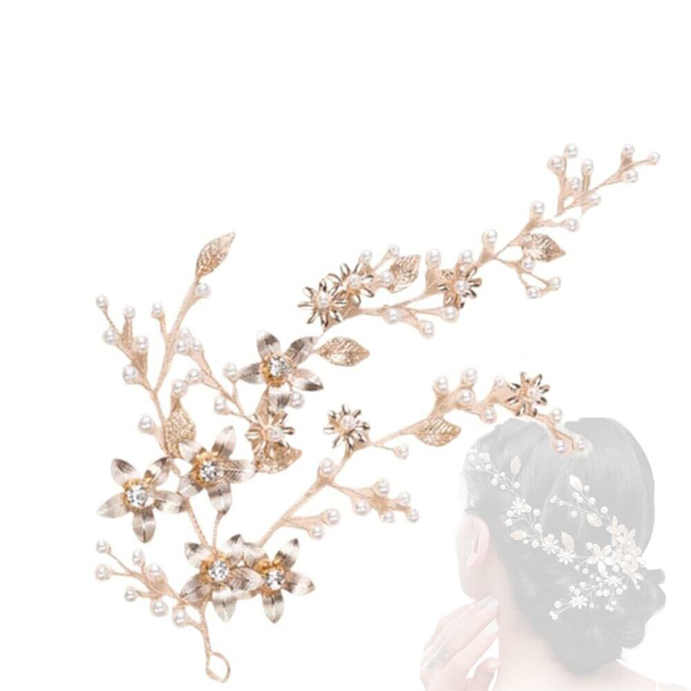 【数量限定】ヘアアクセサリー 結婚式 ウェディング 髪飾り 花 パール 花かんむり ヘッドドレス ゴールド バック カチューシャ お呼ばれ リーフ 花 ブライダル 披露宴 小枝 披露宴 結婚式 二次会 和装 パーティー 演奏会 卒業式 成人式 入学式 発表会