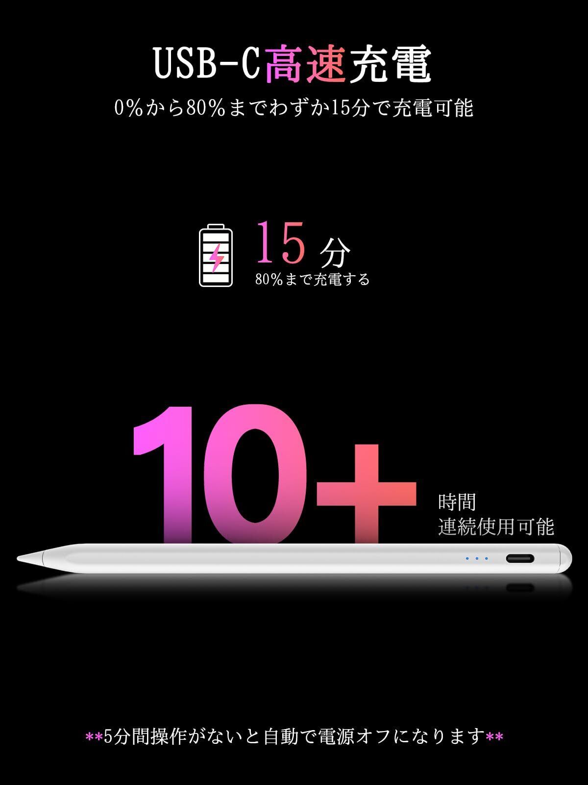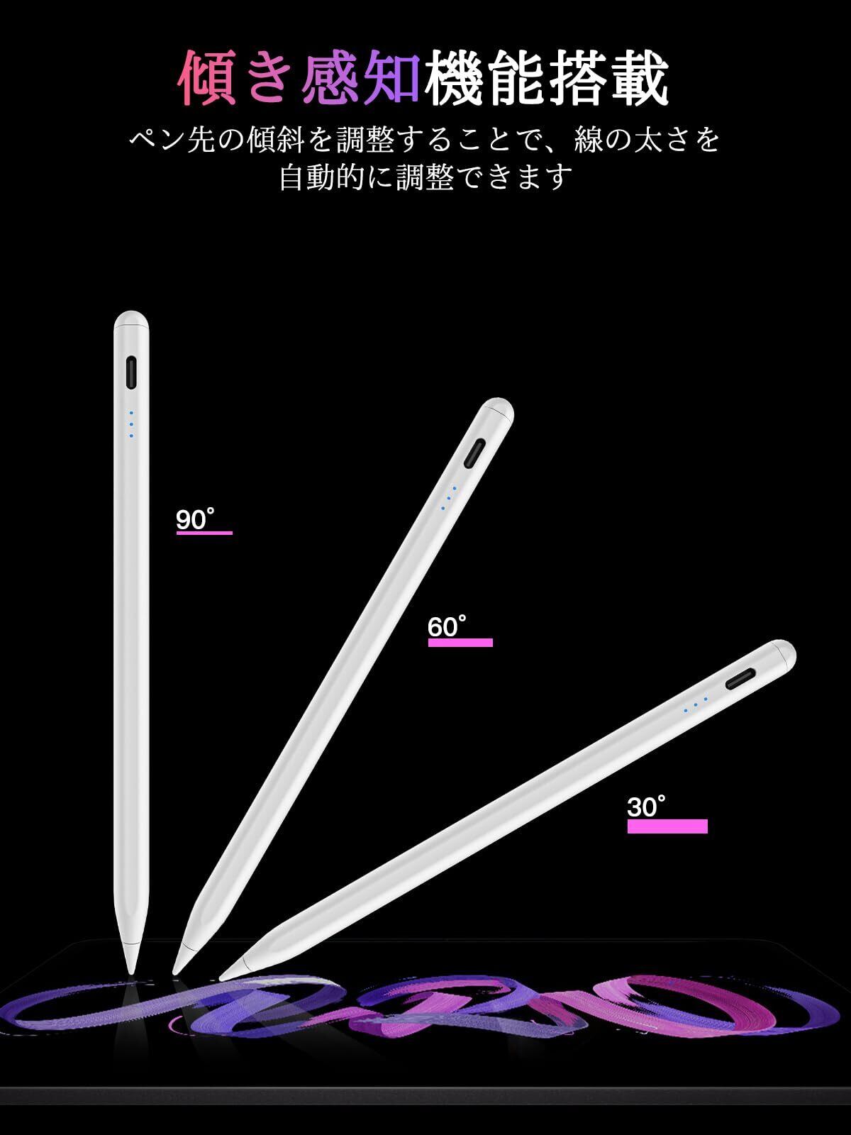 KEEPRO iPad ペンシル 2018〜2025年iPad対応 Apple Pencil代替 タッチペン スタイラスペン Type-C急速充電 超高感度 傾き感知 パームリジェクション 磁気吸着 誤作動防止 極細ペン先 替え芯3本付き【Bluetooth不要・電源オンですぐ使える!】ホワイト