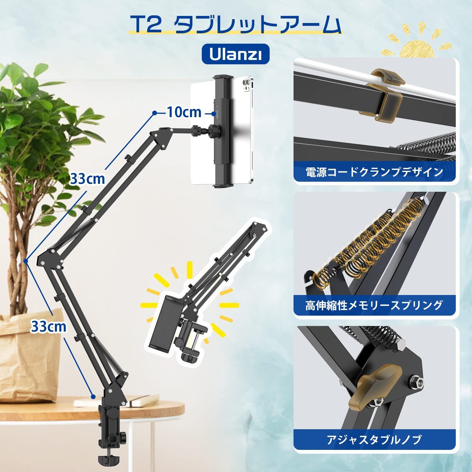 Ulanzi タブレットアーム タブレットスタンド ipad用スタンド 寝ながらipad アーム スマホスタンド 4.6〜12.9インチ 360°回転ホルダー 両用 横/縱き ベッドサイド 卓上スタンド 揺れない iPad/iPhone/Kindle Fire/N-Switch/Android/surfaceに多機種対応 アルミ製クランプ式