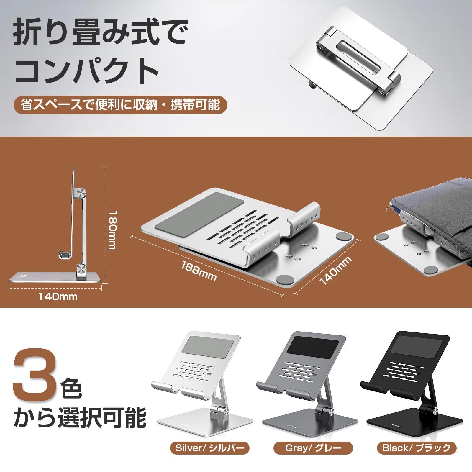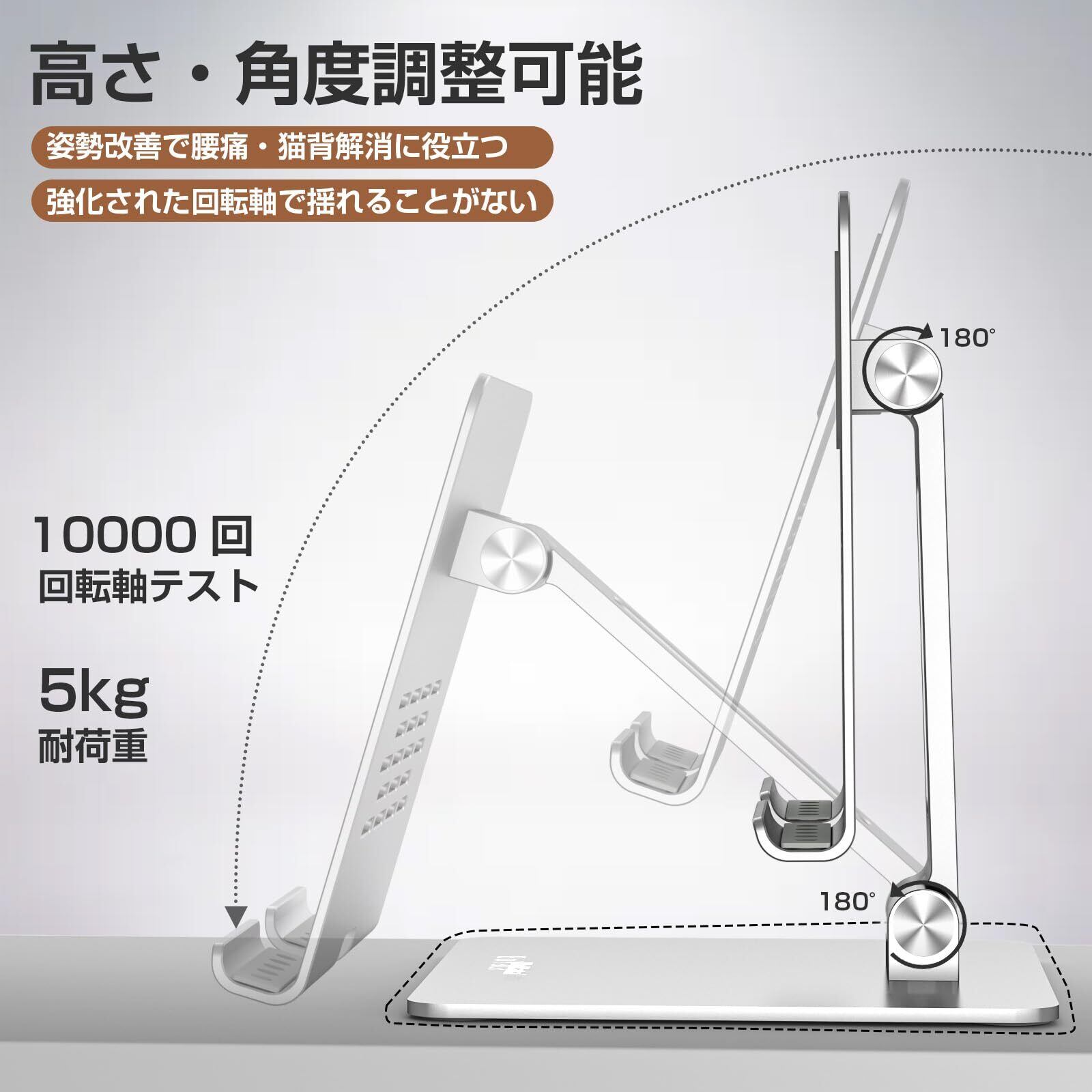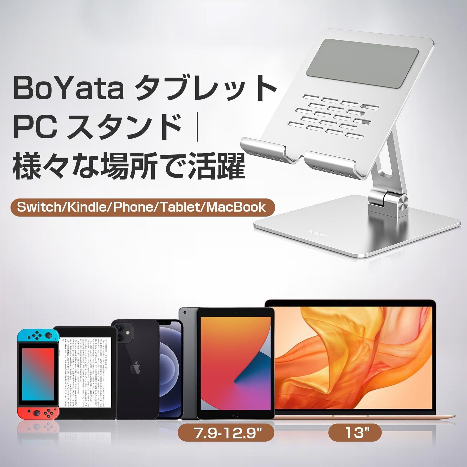 BoYata タブレットスタンド ipad/ノートPC/Surface Pro スタンド 縦置き 横置き 安定性 姿勢改善 滑り防止パッド 軽量 折りたたみ式 炭素鋼 5-13インチのMacbook/iPad/Kindle/Surface/Nintendo Switch機種などに対応 シルバー