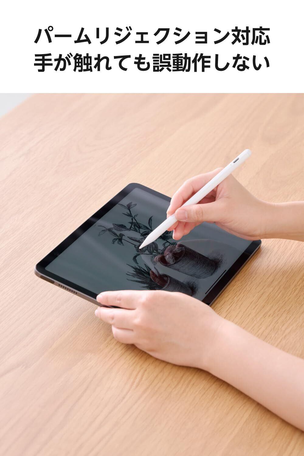 【2022最新】エレコム タッチペン 【iPad 7/8/9/10、 11インチ(A16)、Pro 11/12.9/13インチ、 Air11・13インチ(M3, M2)、 mini A17 Pro対応】 iPad専用ペンシル 急速充電 パームリジェクション 傾き検知 20分でフル充電 磁気吸着 USB-C充電 ホワイト P-TPACSTAP09WWH