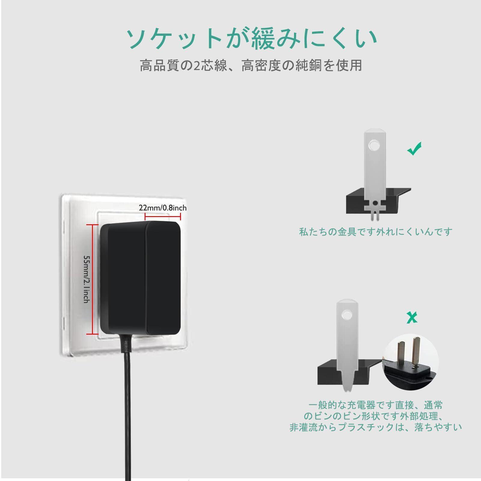 「製品安全」この電源アダプタは高品質な素材を使用し、短絡保護、過熱保護、過電圧保護、過負荷保護、過電流保護など複数の保護機能を備えています。 当社の製品は安全性テスト済みですので、安心してご使用いただけます