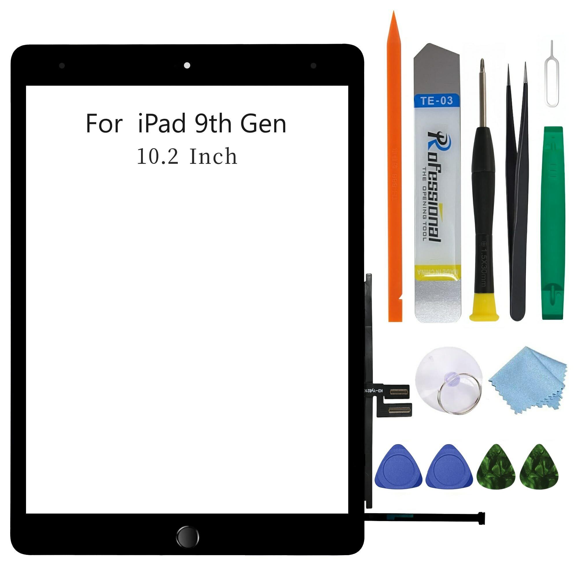 【人気商品】ブラック タッチパネル交換用 10.2インチ 2021 iPad 第9世代(A2602 A2603 A2604 A2605)ガラスタッチデジタイザー 画面交換修理用、取り付け済み接着剤、ツール修理キット(ホームボタン付き)