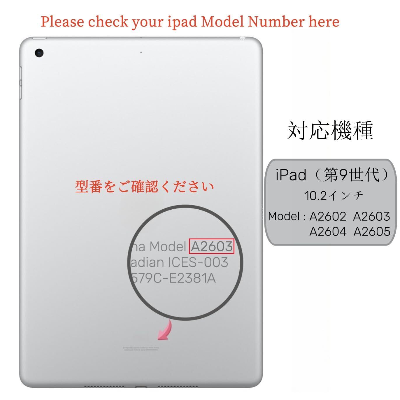 【互換性】 10.2インチ iPad 第9世代( A2602/A2603/A2604/A2605 )のみに適します。ご注文前に、お使いのタブレット型番をご確認ください。