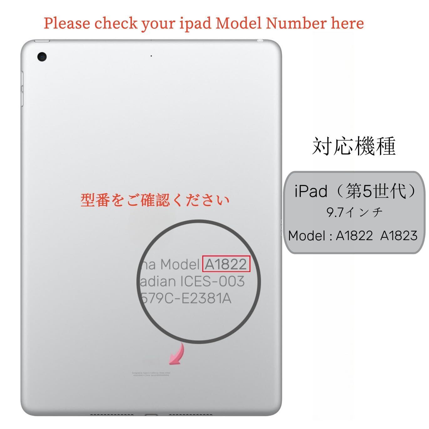【互換性】 9.7インチ iPad 第5世代( A1822/A1823 )のみに適します。ご注文前に、お使いのタブレット型番をご確認ください。