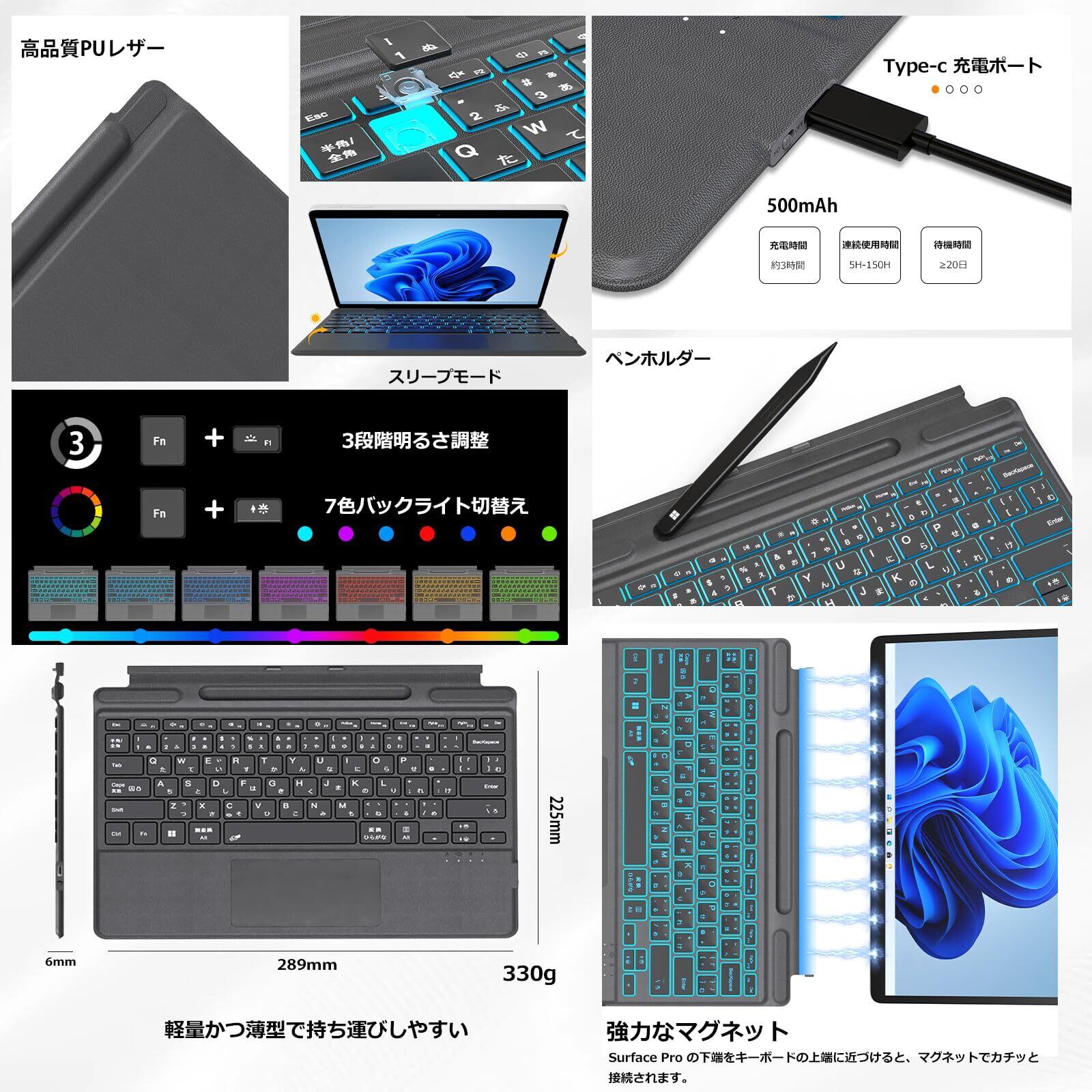 【数量限定】マイクロソフト Surface Proキーボード Surface Pro11/10/X/9/8 通用 タッチパッド搭載 日本語配列 超薄スリム 軽量 持ち運びやすい 磁気吸着 Typ-C充電 脱着式 日本語取扱説明書