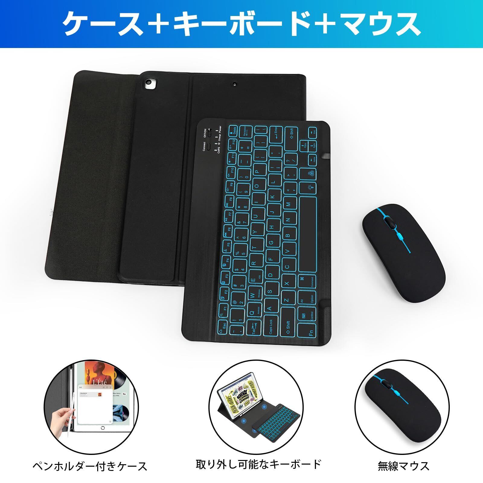 LAMA iPad キーボードケース マウス付き 10.2インチ 第9世代 第8世代 第7世代 /iPad Air 10.5インチ(第3世代)/iPad Pro 10.5インチ用 7色バックライト付き 着脱式 ペンシルホルダー付き ブラック