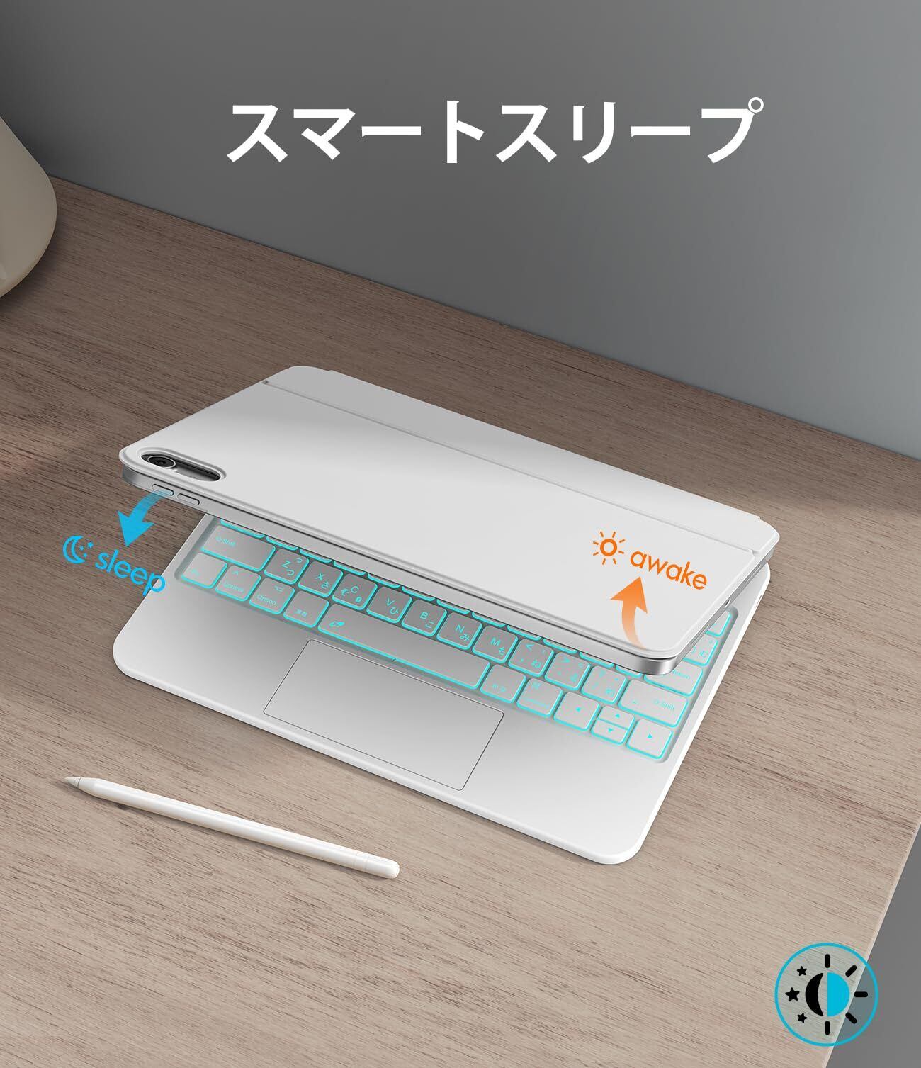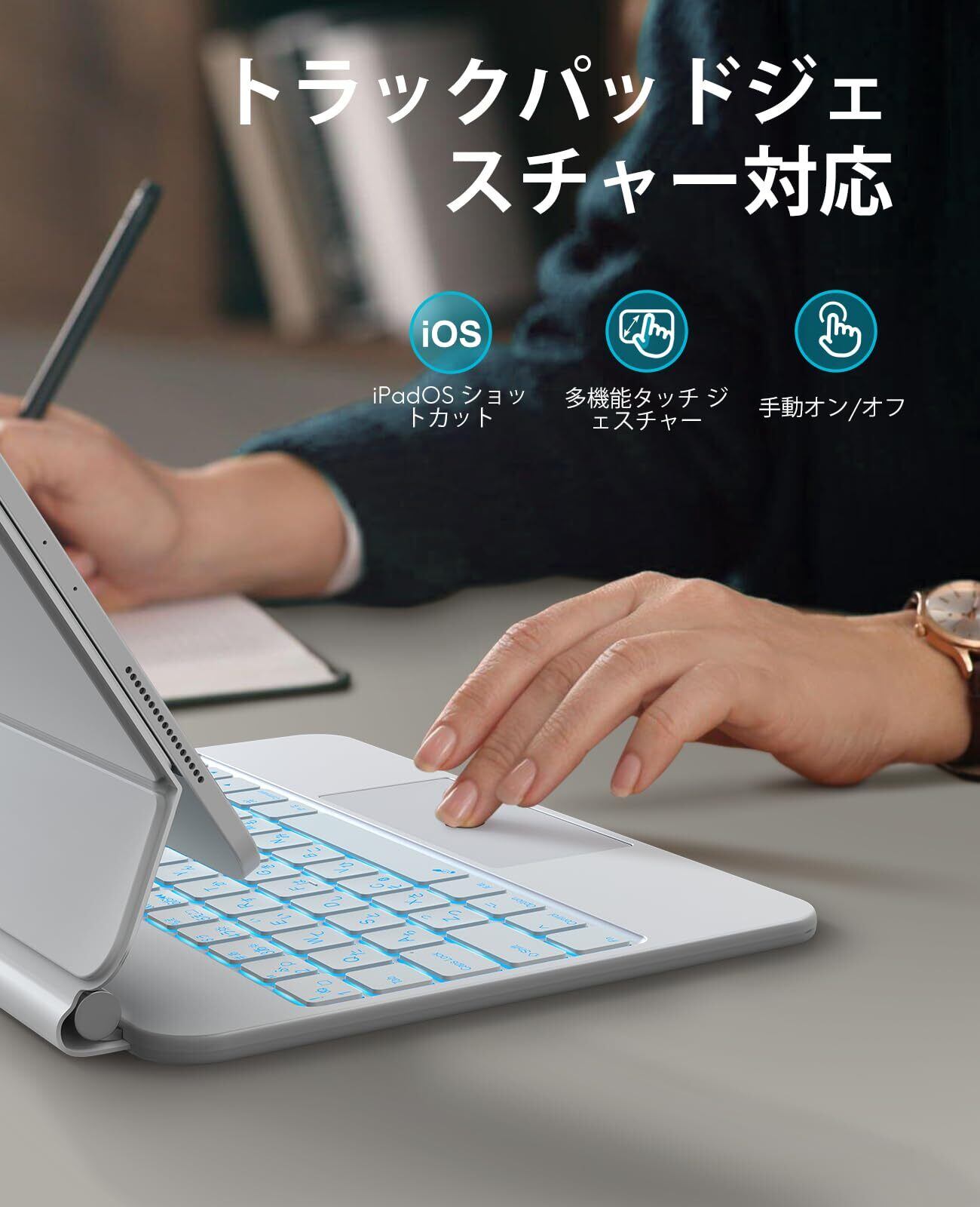 【感度が高く正確なトラックパッド】 マルチタッチジェスチャー認識で、iPadに非常に便利で、ウェブを閲覧し、ページをスライドし、アプリを切り替えることができます。タッチパッド用に特別に設計された抗タッチデザインで、タイピング中にトラックパッドに触れてカーソルが乱れる心配はありません。カバーを開閉すると、iPad 10thは即座にインテリジェントなウェイクアップ/スリープ機能に入ります。どこでも手軽に持ち運べる超薄型デザインです。