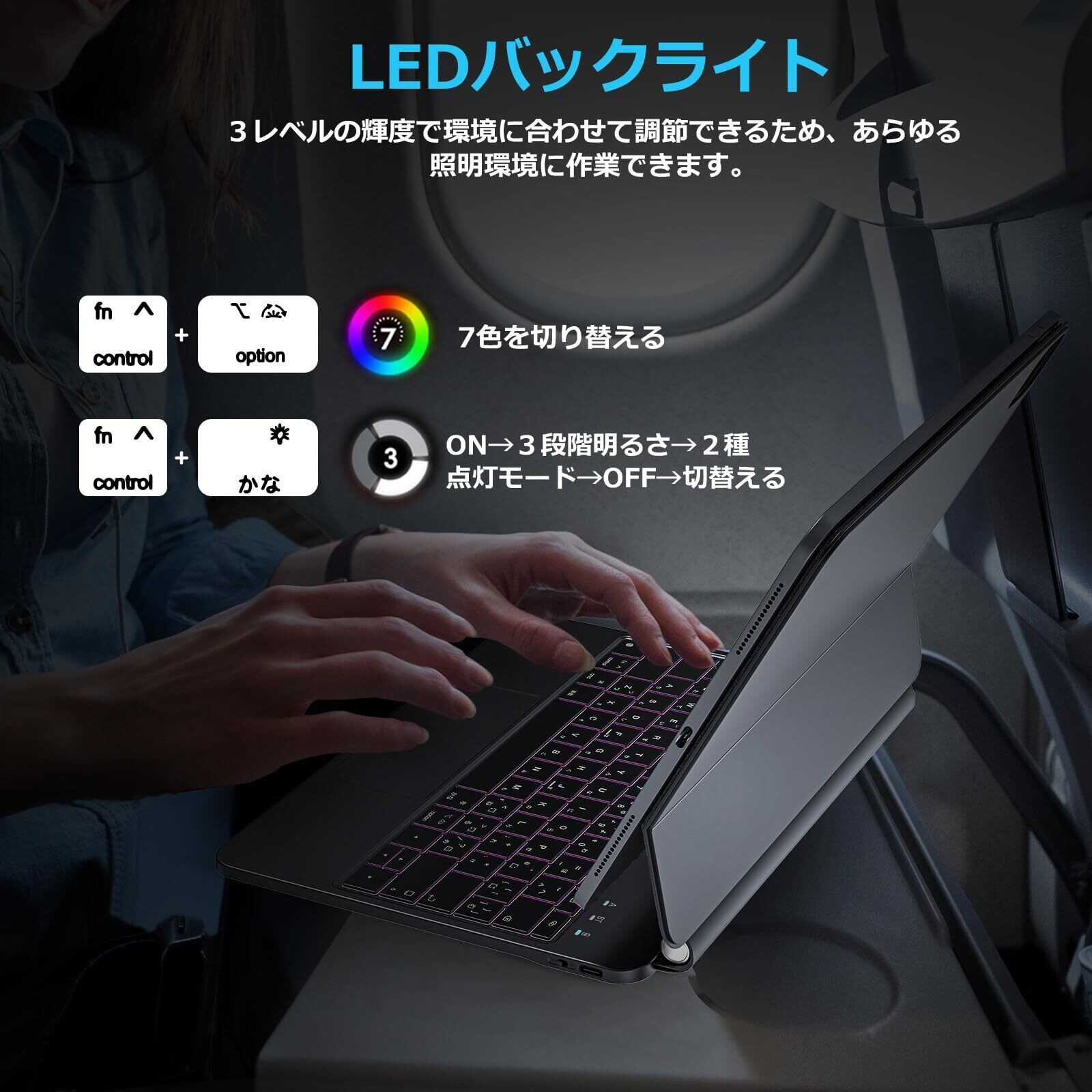 【在庫セール】マジックキーボード 2025i-Pad Air 13インチ (M3) 2024 i-Pad Air 13インチ (M2) i-Pad Pro第3/4/5/6世代12.9インチに適用 iPadキーボード付きケース 日本語配列 高精度トラックパッド ショートカットキー 磁気吸着 7色バックライト 角度調整 日本語取扱説明書付き ブラック