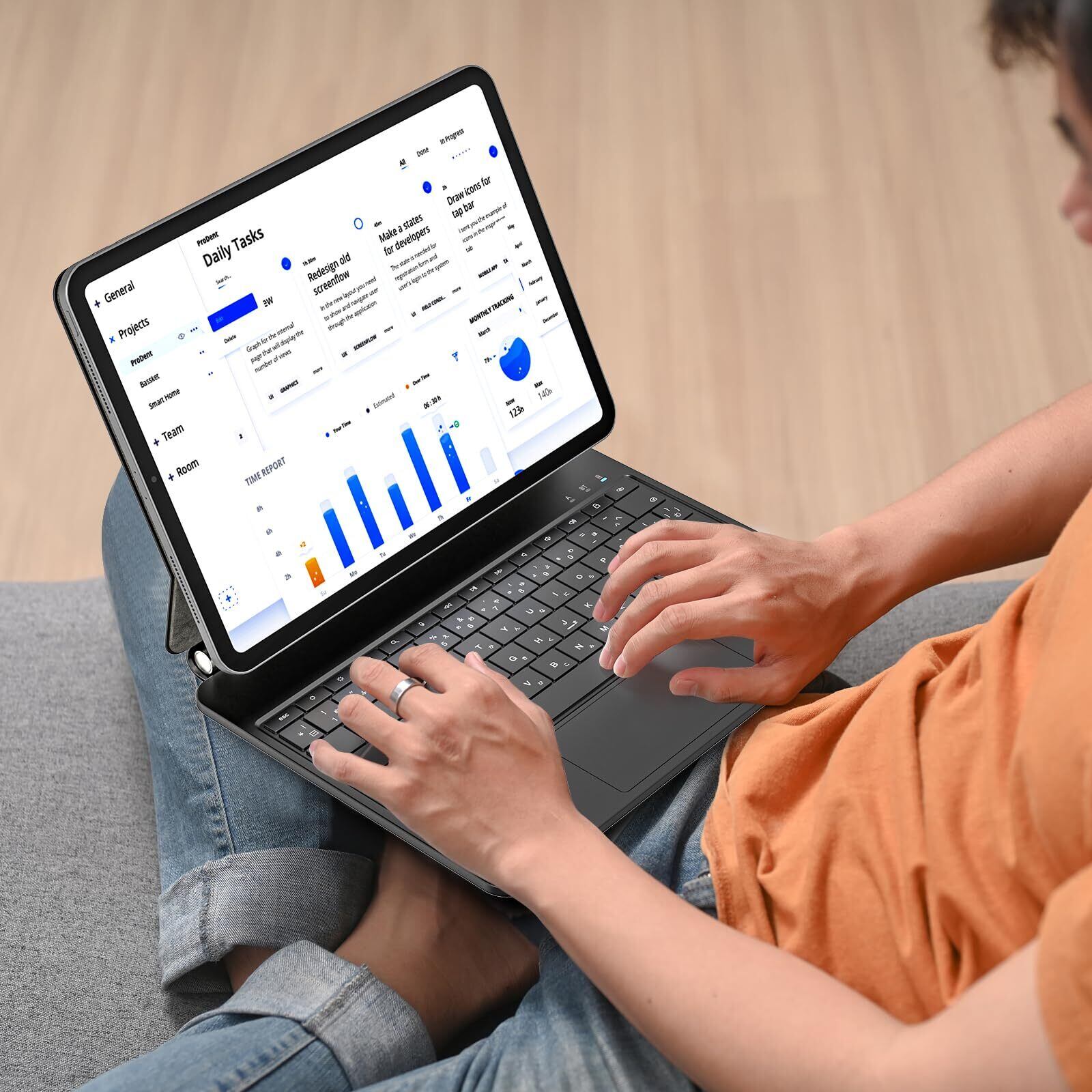 マジックキーボード 2025i-Pad Air 13インチ (M3) 2024 i-Pad Air 13インチ (M2) i-Pad Pro第3/4/5/6世代12.9インチに適用 iPadキーボード付きケース 日本語配列 高精度トラックパッド ショートカットキー 磁気吸着 7色バックライト 角度調整 日本語取扱説明書付き ブラック