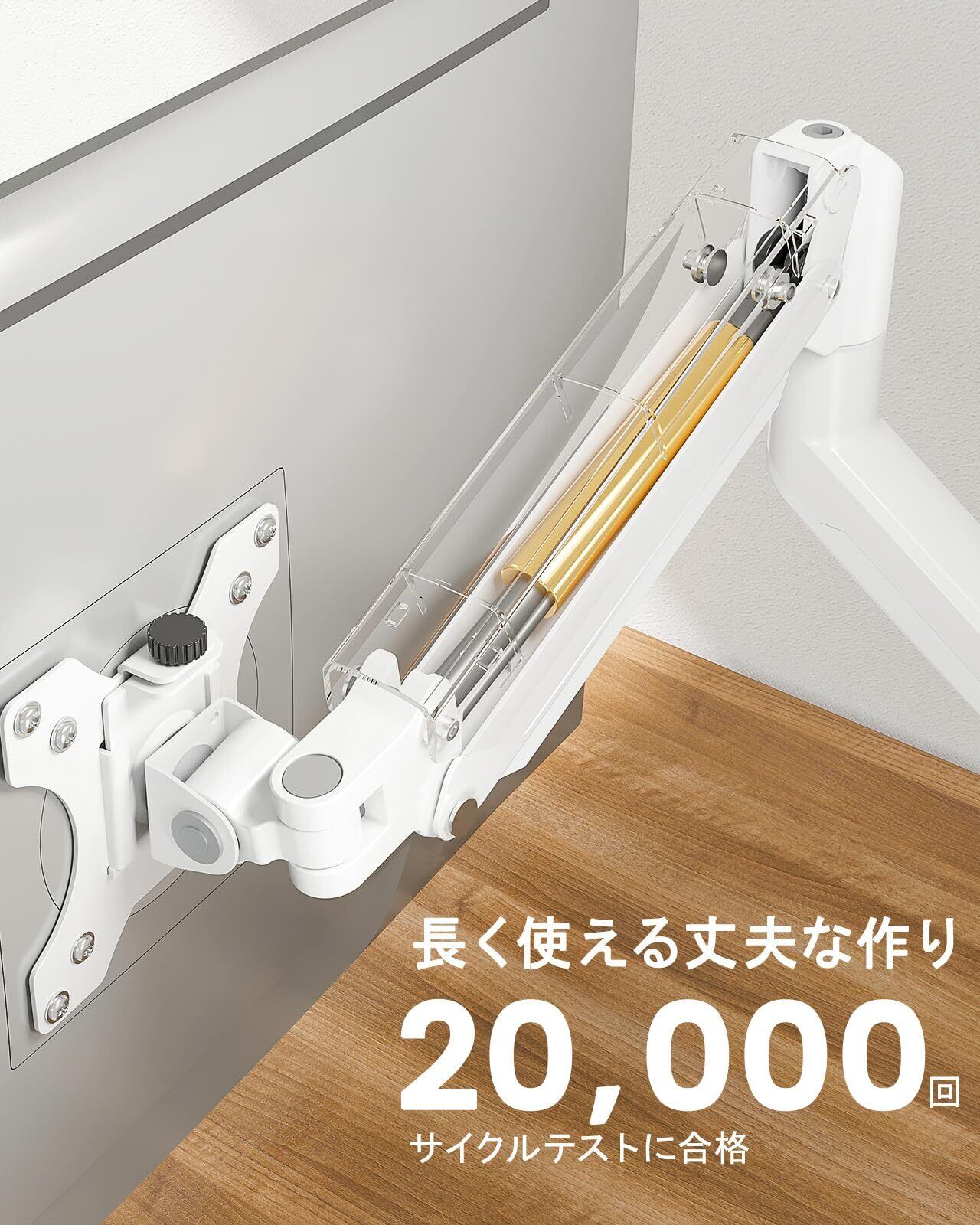 【拡張・収縮機能拔群】180°で調整可能な2つの関節に加えて、モニターを設置した後は 、上向き 90°、下向き40°、左右各90°も調整できます。人間工学に基づいた設計により、頭を下げて作業するという「習慣の壁」を破り、高さは身長とテーブルに合わせて簡単かつ迅速に調整できます!###【ご注意】アームを水平にしてからガス圧を調節してください、アームを水平にしないとガス調節ができません。###