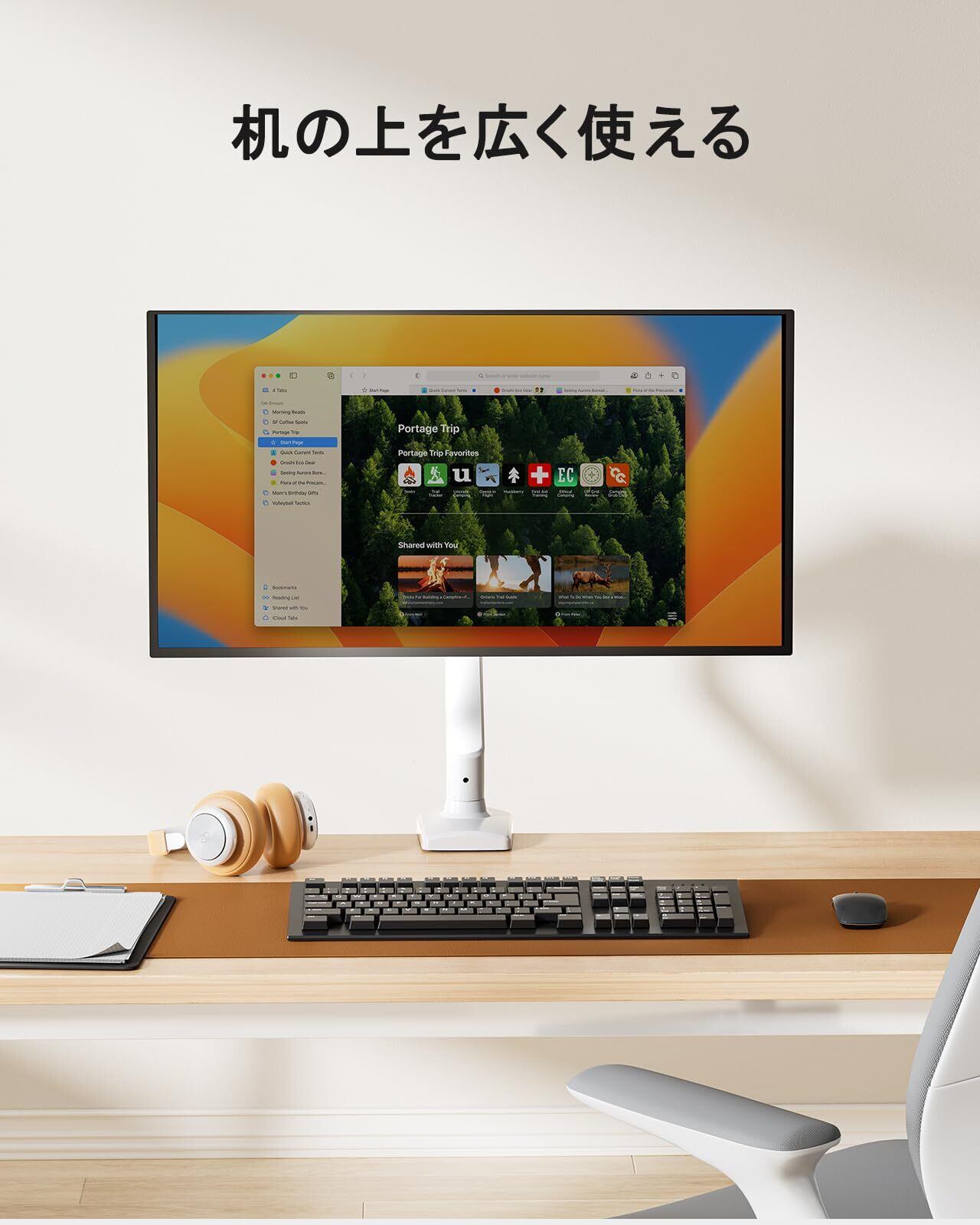 【新着商品】ErGear PC モニターアーム 13-32インチ対応 耐荷重2-8kg ホワイト/白 ディスプレイアーム pc vesa アーム ガススプリング式 シングル クランプ式 グロメット式