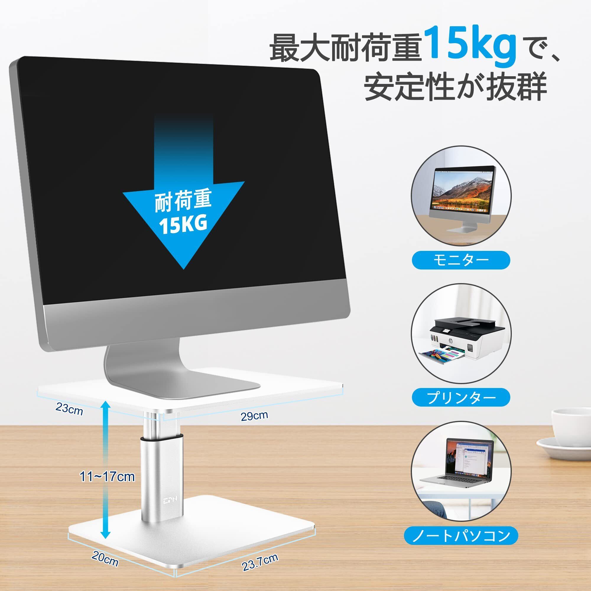 EPN モニター台 モニタースタンド ディスプレイ台 11cm~17cm 高さ調節 耐荷重15kg 金属製 安定 机上台 パソコン台 液晶モニター台 ディスプレイスタンド パソコンスタンド 組み立て 姿勢改善 パソコン周り (銀色)