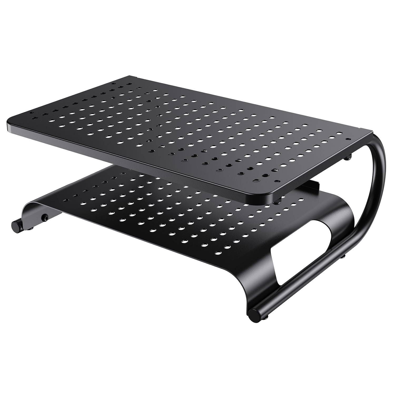 【軽くて丈夫なスチール製】台部分は金網状のメッシュを採用しているので、視認性・通気性が良く圧迫感を感じさせません。インテリアに馴染みやすいシンプルなデザインです。脚の底面には滑り止めのゴムが付いていますので安定してモニターが設置できます。