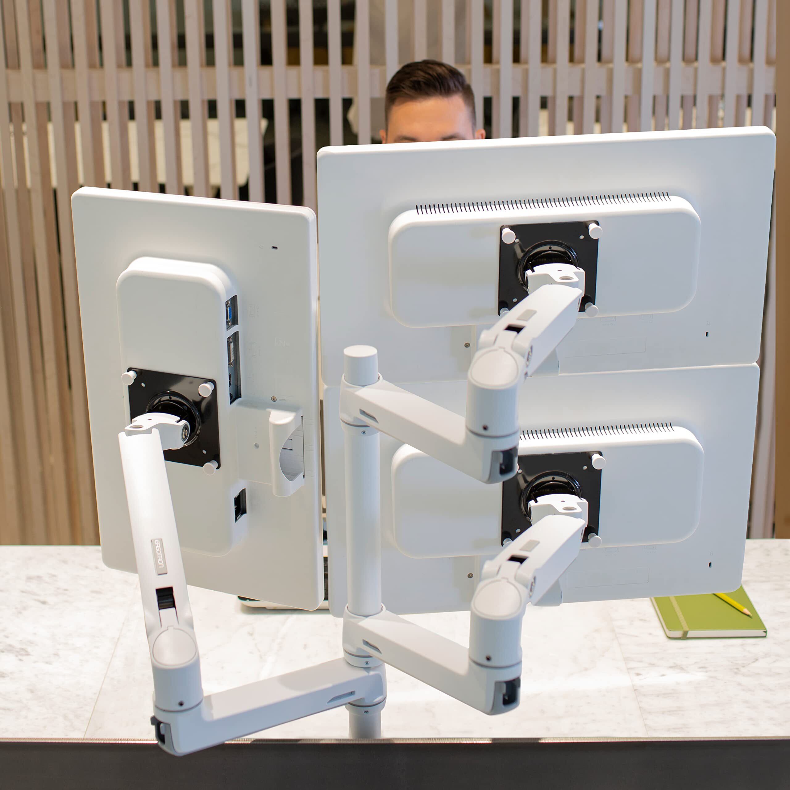 LXデスクモニターアーム 長身ポールには1本追加可能。その際の荷重範囲は1モニターにつき3.2kgから9.1kgです。