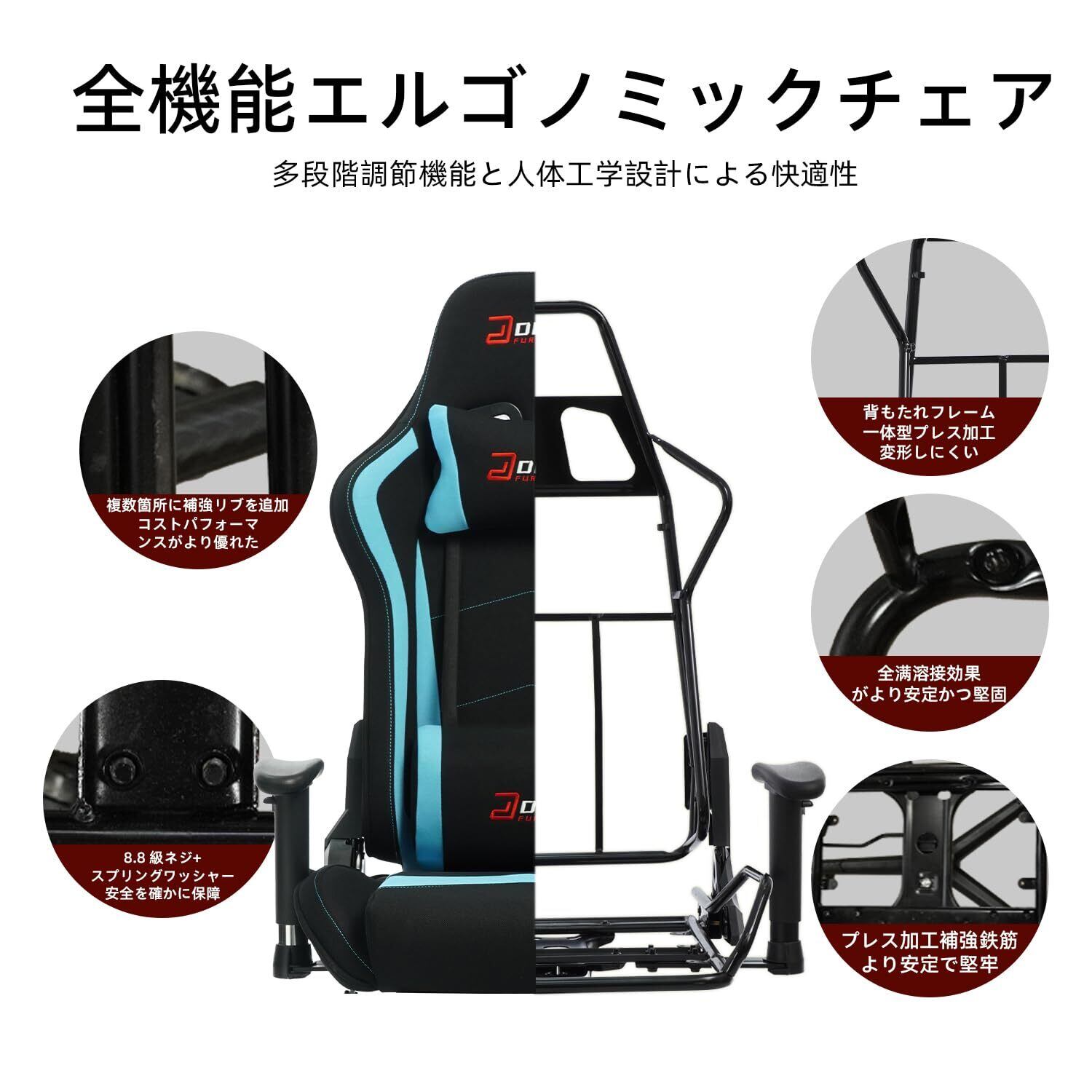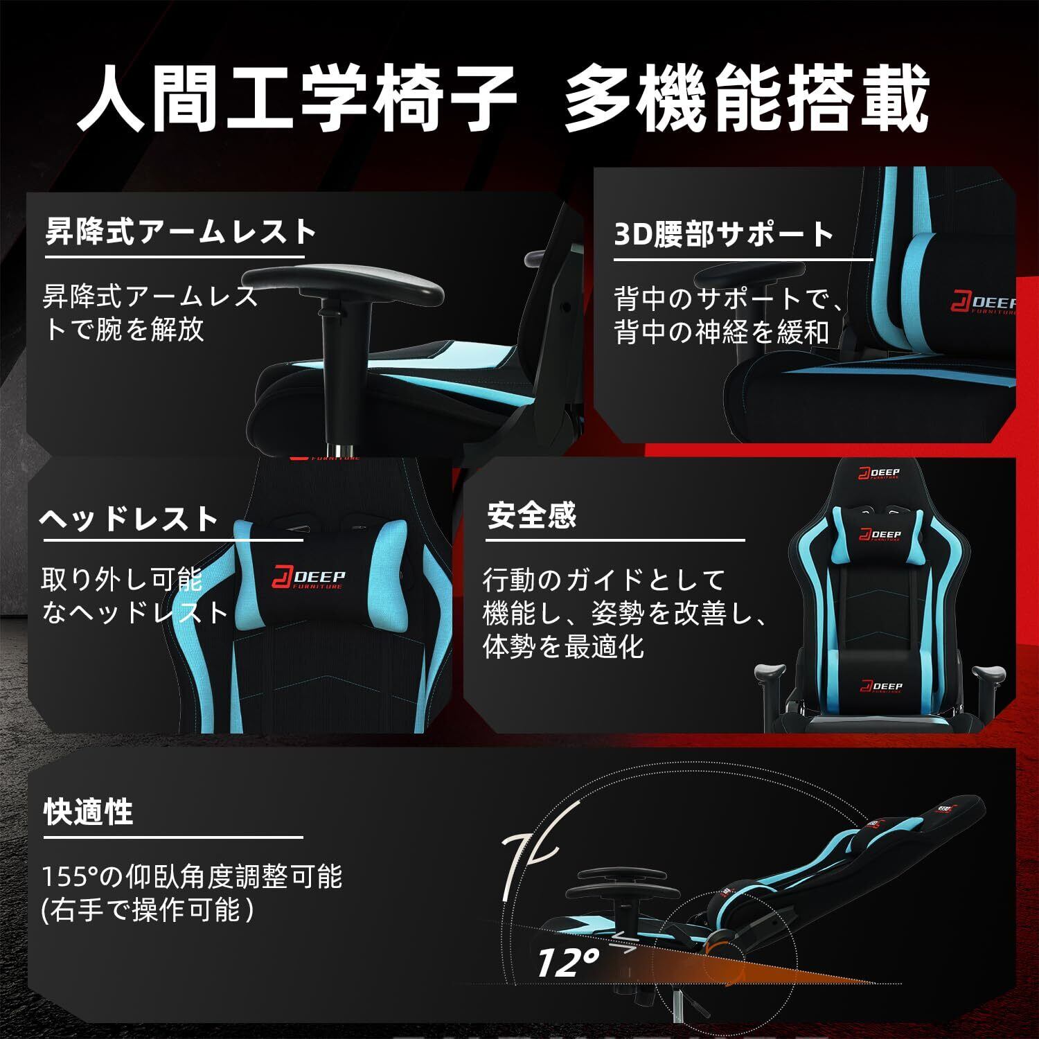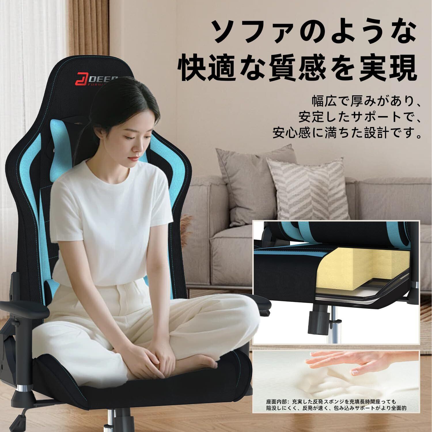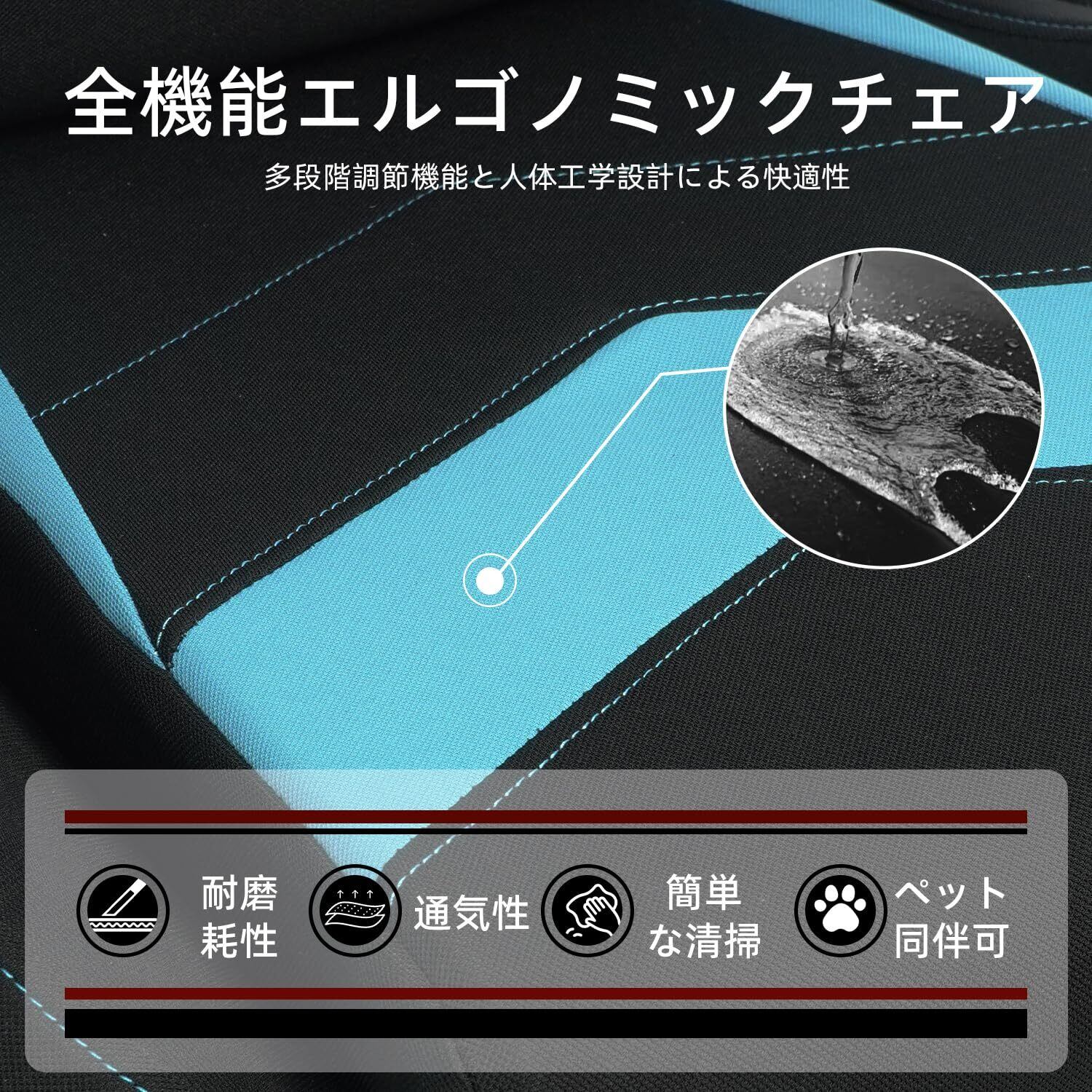 【数量限定】DEEPfurnitureゲームチェア、快適でコストパフォーマンスに オフィス用チェア。人間工学に基づいたデザインを採用したゲーミングチェア。肌触りが良く通気性に 素材を使用し、豊富な機能を搭載。一体型フレーム構造で、安定性と耐久性に優れています。(ライトブルー)