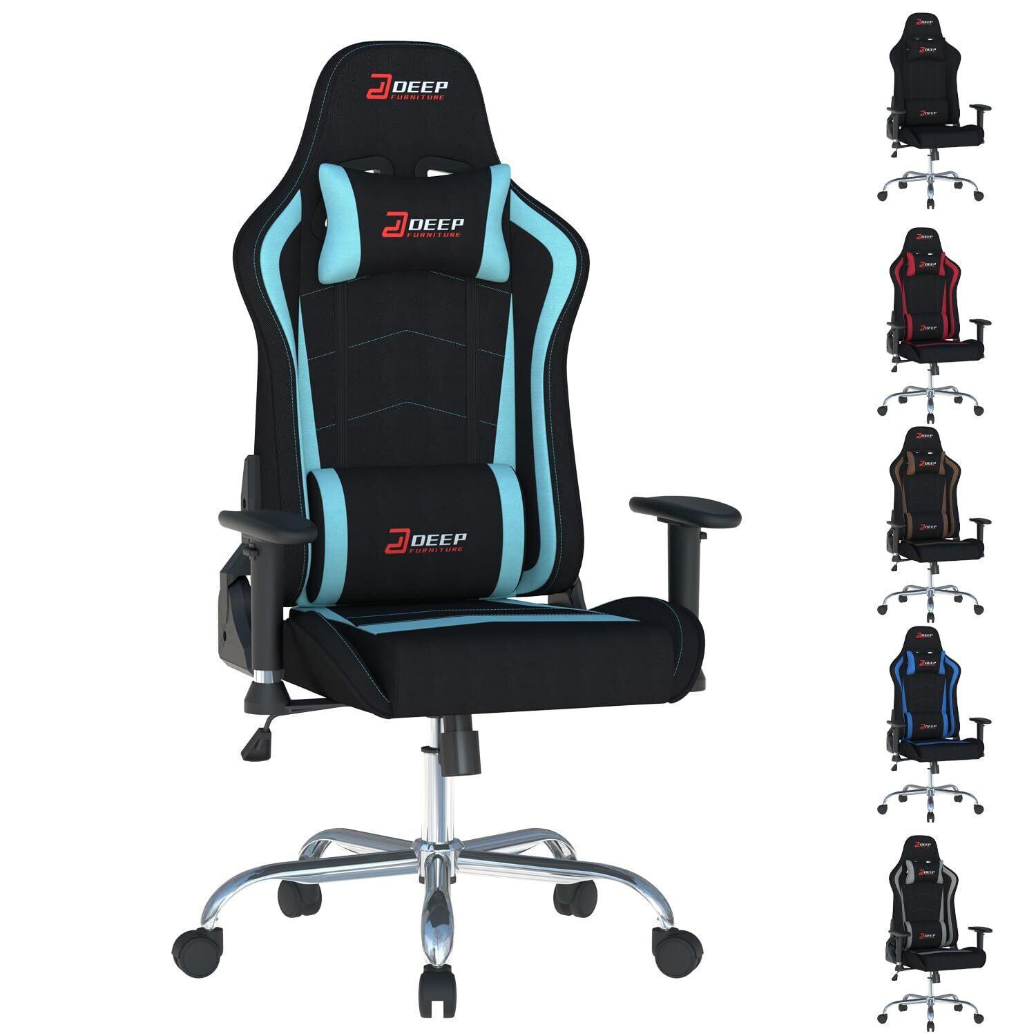 DEEPfurnitureゲームチェア、快適でコストパフォーマンスに オフィス用チェア。人間工学に基づいたデザインを採用したゲーミングチェア。肌触りが良く通気性に 素材を使用し、豊富な機能を搭載。一体型フレーム構造で、安定性と耐久性に優れています。(ライトブルー)