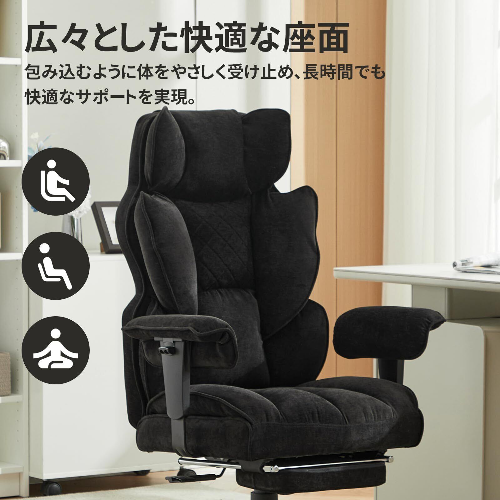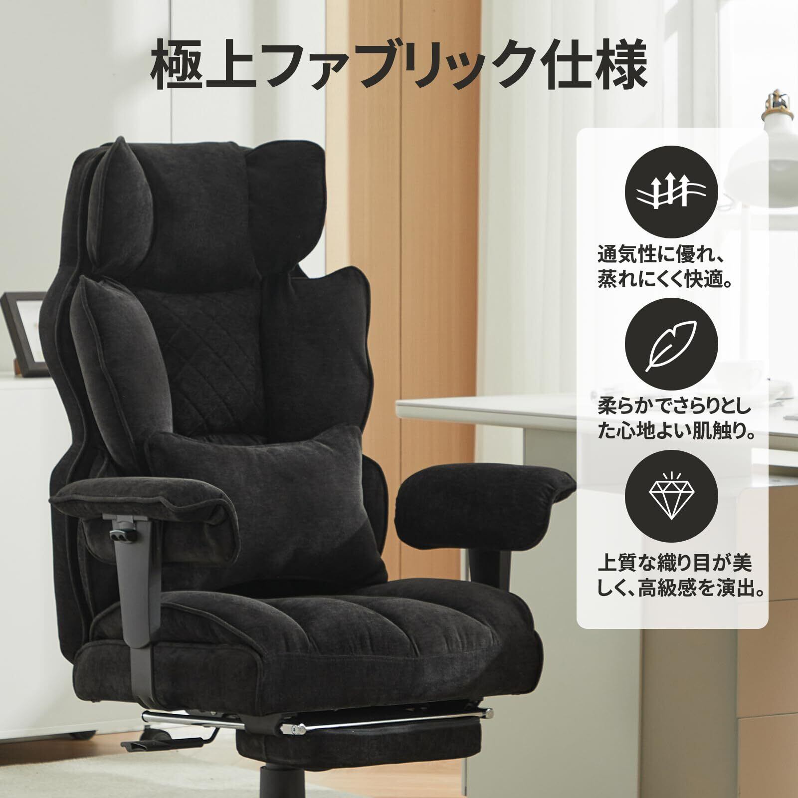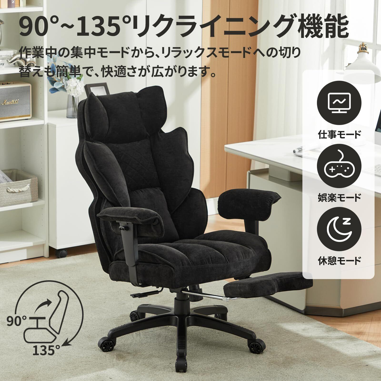 SKYE ゲーミングチェア 広々座面 通気性 ファブリック生地&低反発クッション|135°リクライニング&ランバーサポート|180kg耐荷重 デスクチェア オフィスチェア 在宅勤務 社長椅子 (ファブリック ブラック)