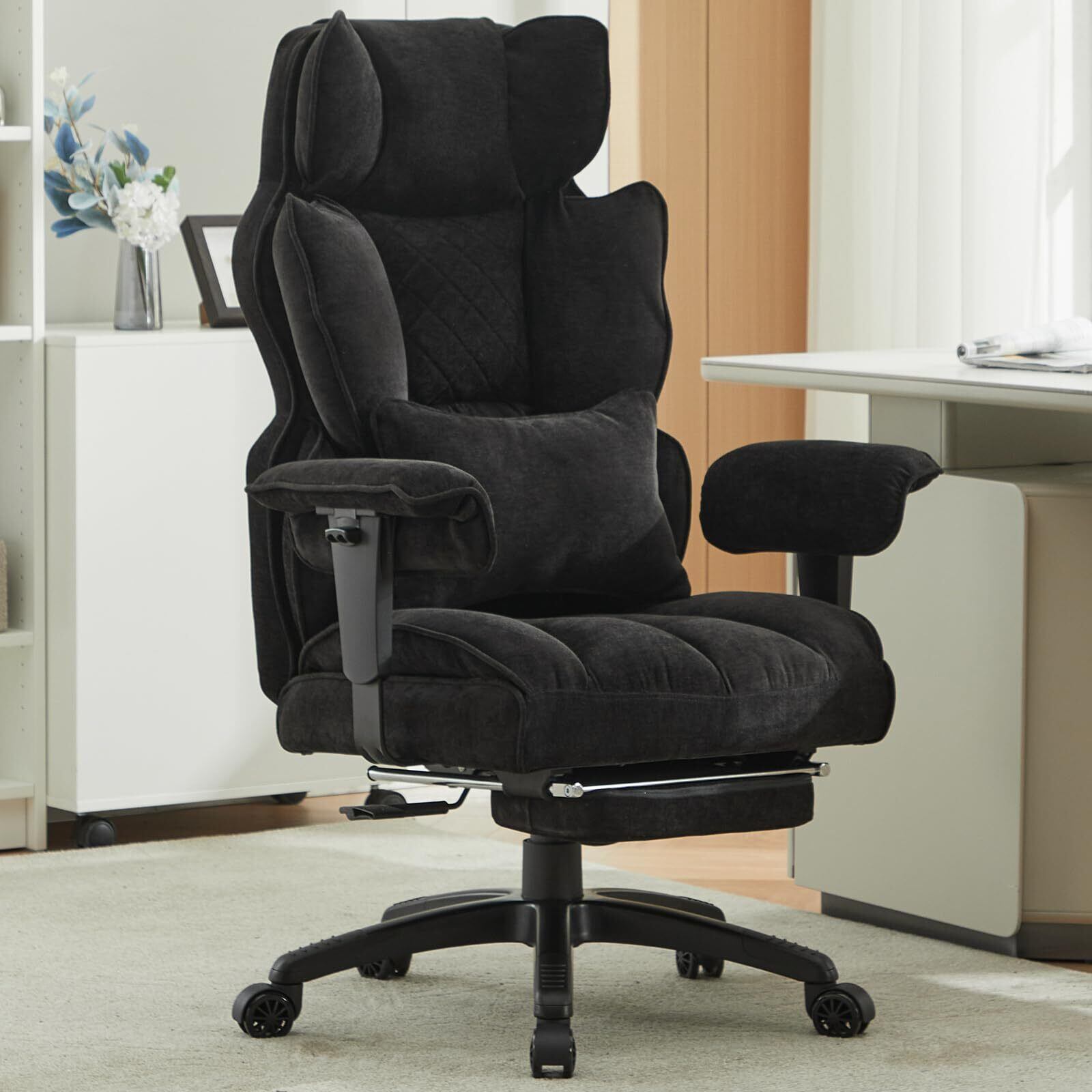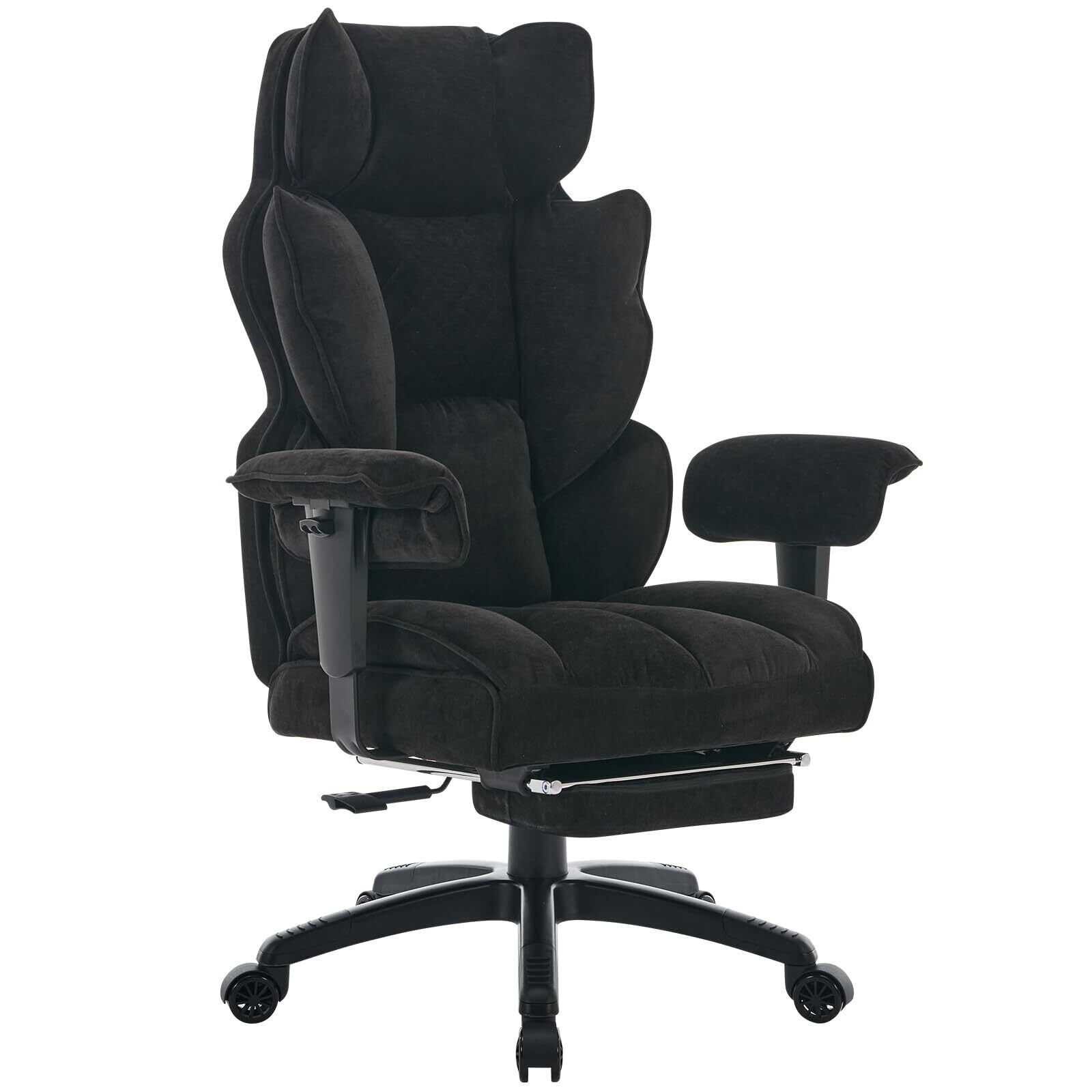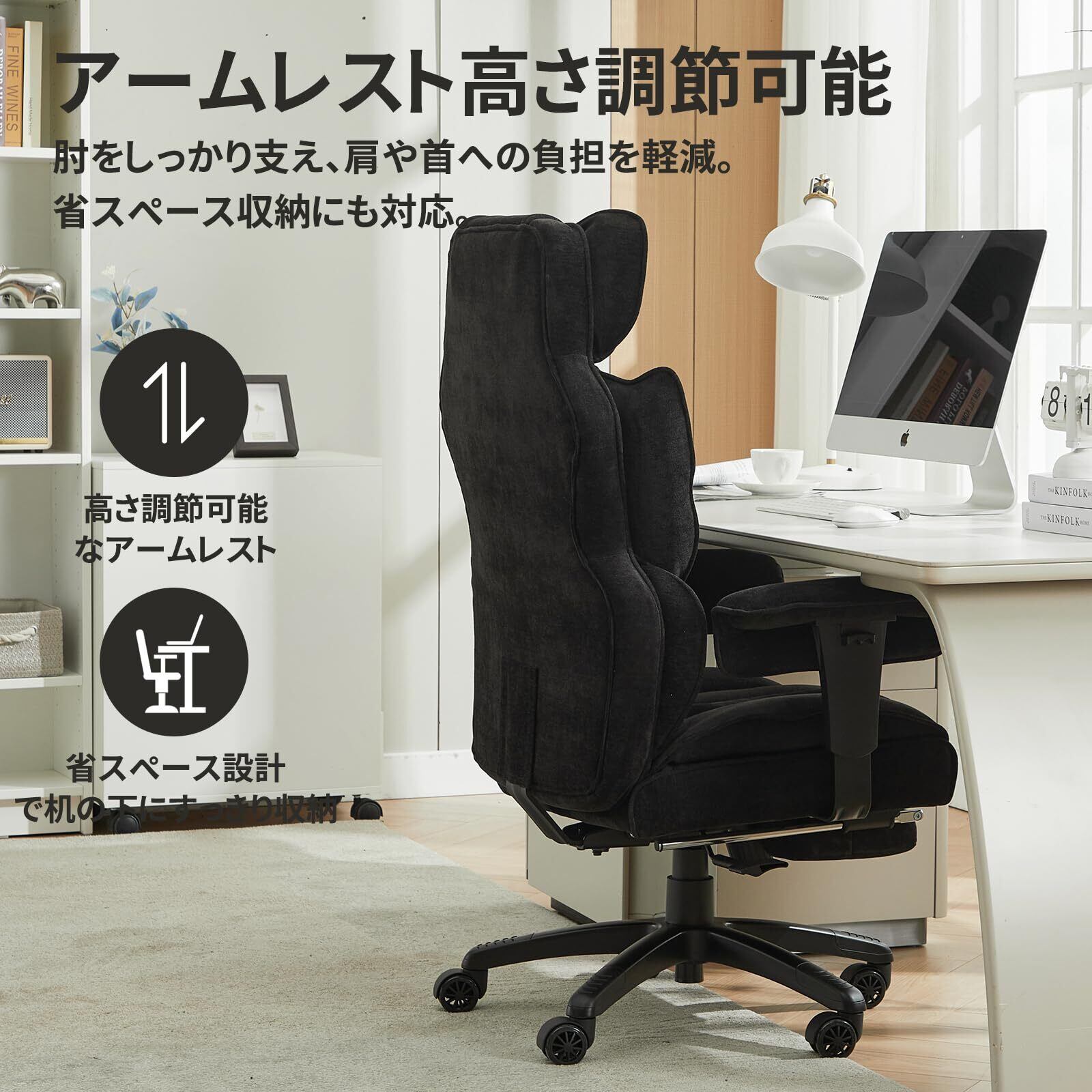 SKYE ゲーミングチェア 広々座面 通気性 ファブリック生地&低反発クッション|135°リクライニング&ランバーサポート|180kg耐荷重 デスクチェア オフィスチェア 在宅勤務 社長椅子 (ファブリック ブラック)