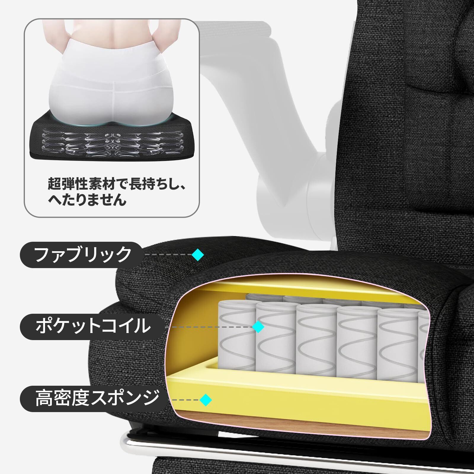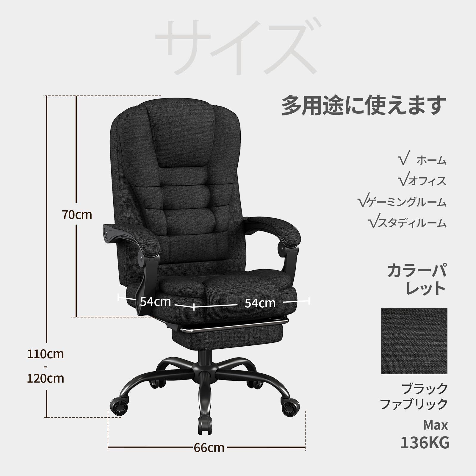 【在庫セール】ファブリック製ゲーミングチェア、人間工学デザインのハイバックオフィスチェア、大型エグゼクティブチェア、高さ調節可能・フットレスト&ランバーサポート付き、360度回転・跳ね上げ式アームレスト、大人用,ブラック