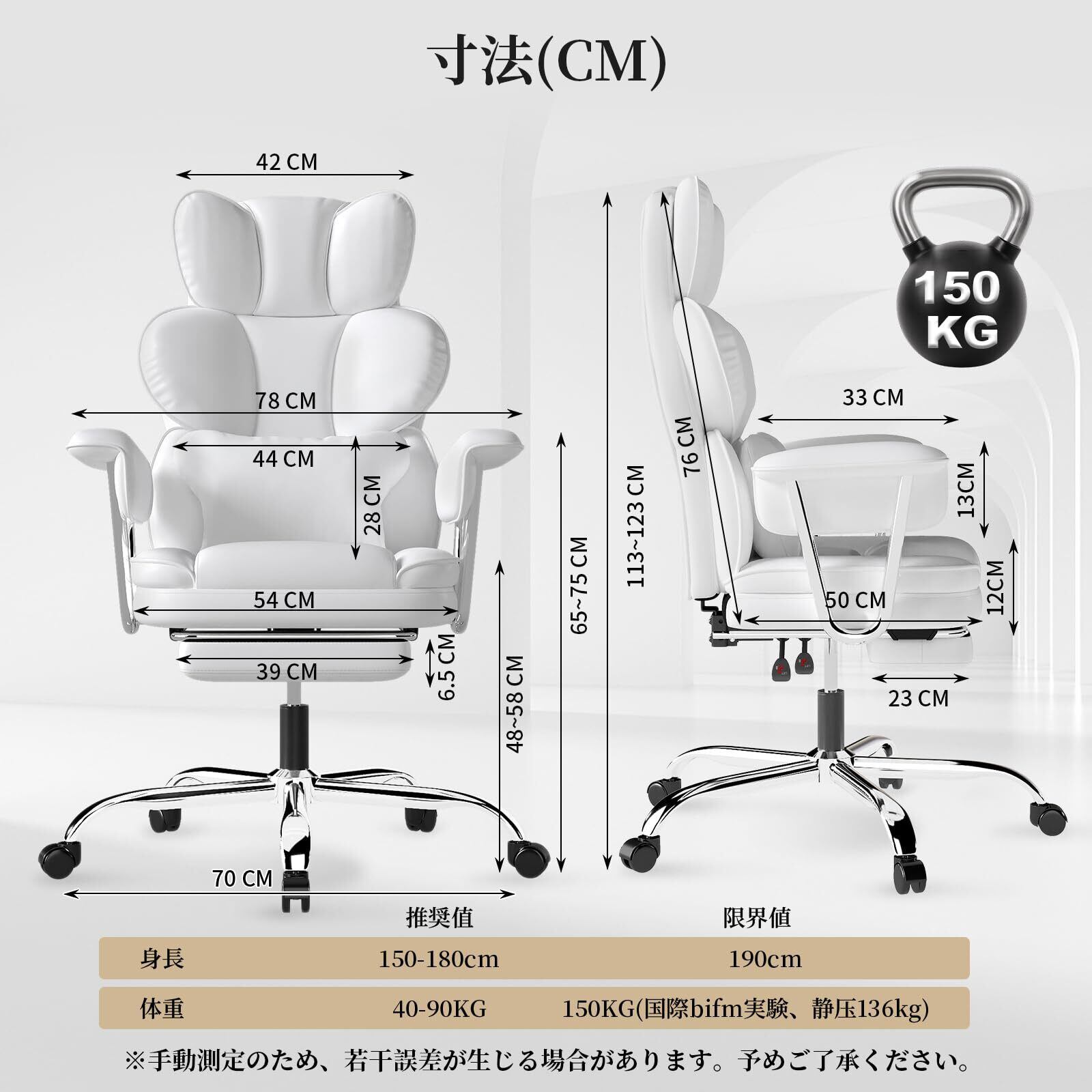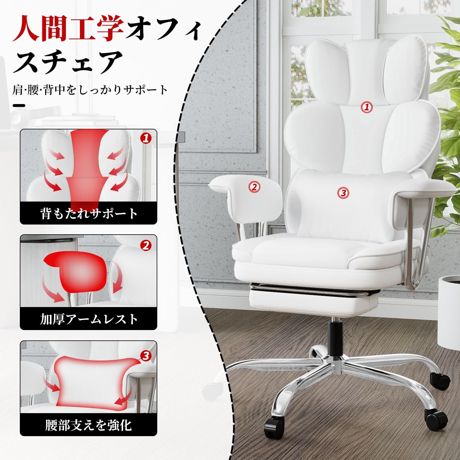 ゲーミングチェア オフィスチェア デスクチェア BoxDesignLab 155度リクライニング 座り心地良い PUレザー 腰サポート 社長椅子 pcチェア 椅子 おしゃれ テレワーク 人間工学 フットレスト付き 事務用 ホームオフィス 勉強 在宅勤務 (ホワイト)